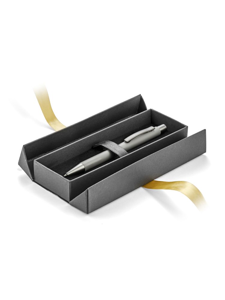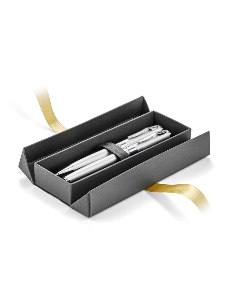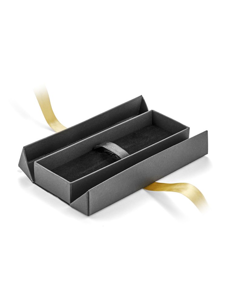 Etui do pakowania artykułów piśmienniczych wykonane z papieru. Zamykane za pomocą wstążki, którą można zawiązać w ozdobną kokardę.