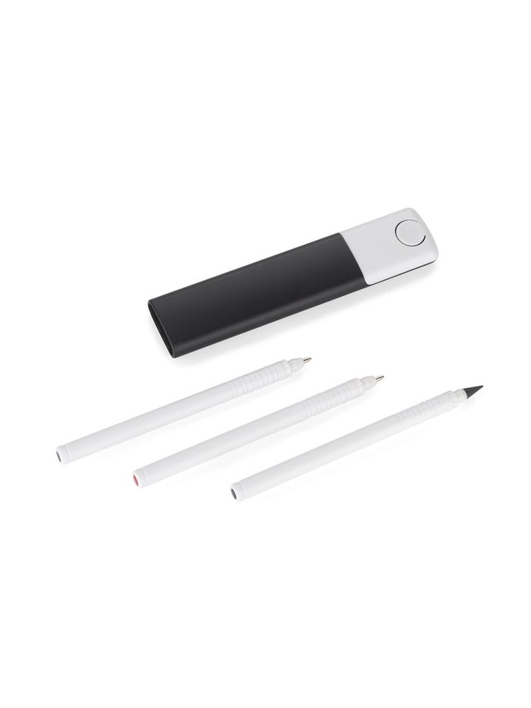 | Wymiary produktu: | 139 x 30 x 12 mm (etui) 121 x ⌀ 8 mm (długopis), 123 x ⌀ 8 mm (ołówek) |