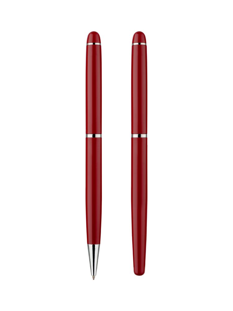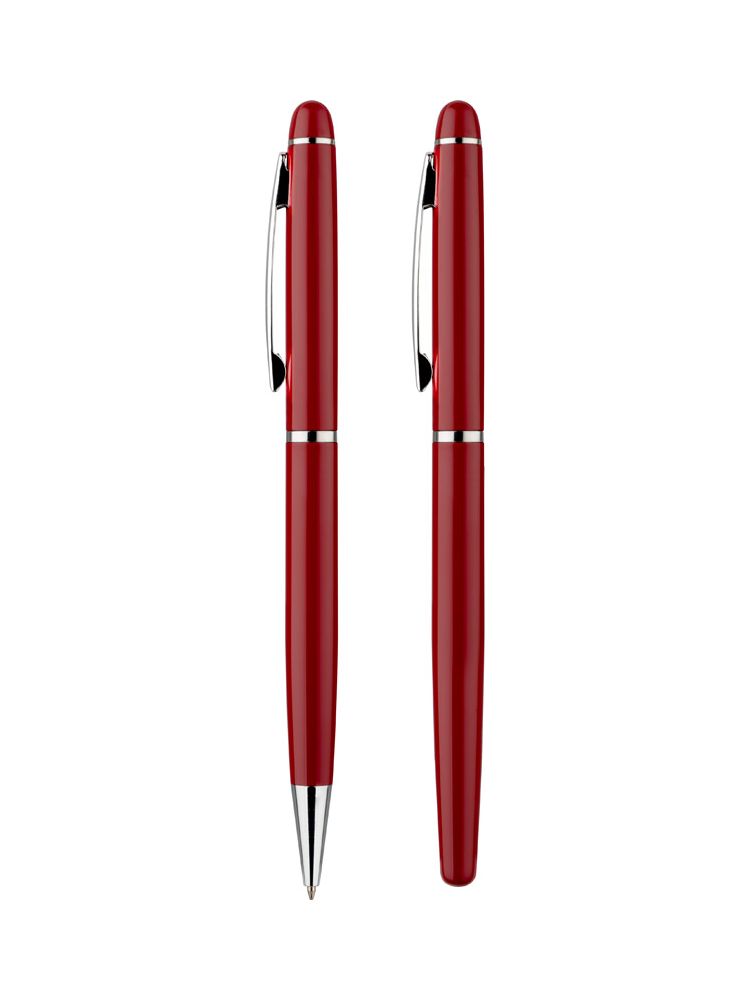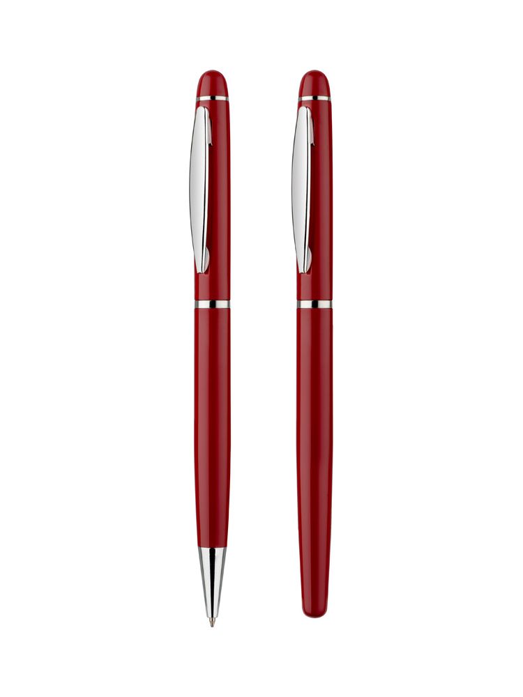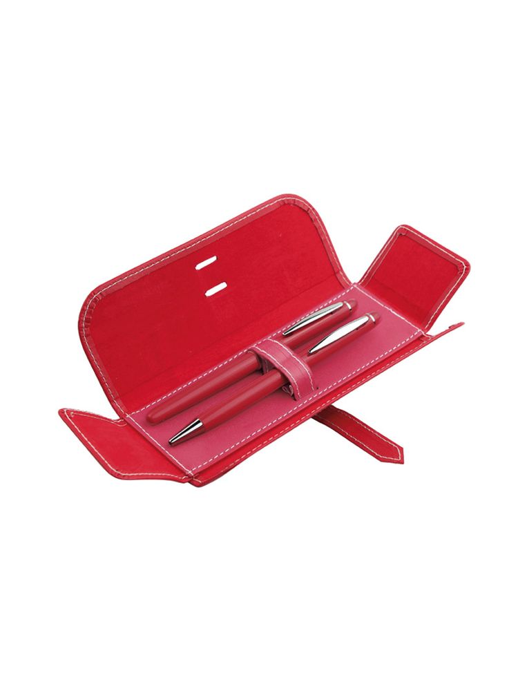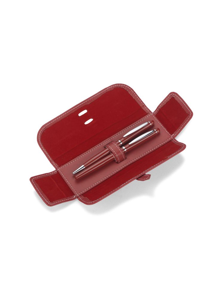 Elegancki zestaw piśmienniczy pakowany w etui z ekoskóry PU. W zestawie znajdują się długopis oraz pióro kulkowe. Logo wygrawerujemy na powierzchni artykułów piśmienniczych. Możliwość wygrawerowania logo także na etui.