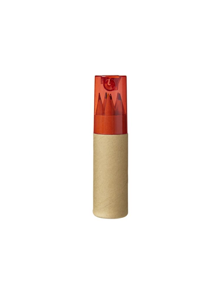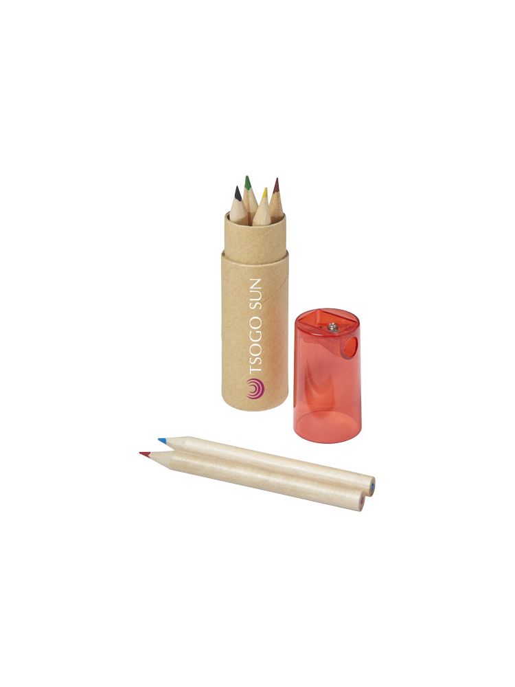 Zestaw 6 kolorowych kredek w tubie z temperówką w wieczku. Nadruk niemożliwy na poszczególnych elementach.