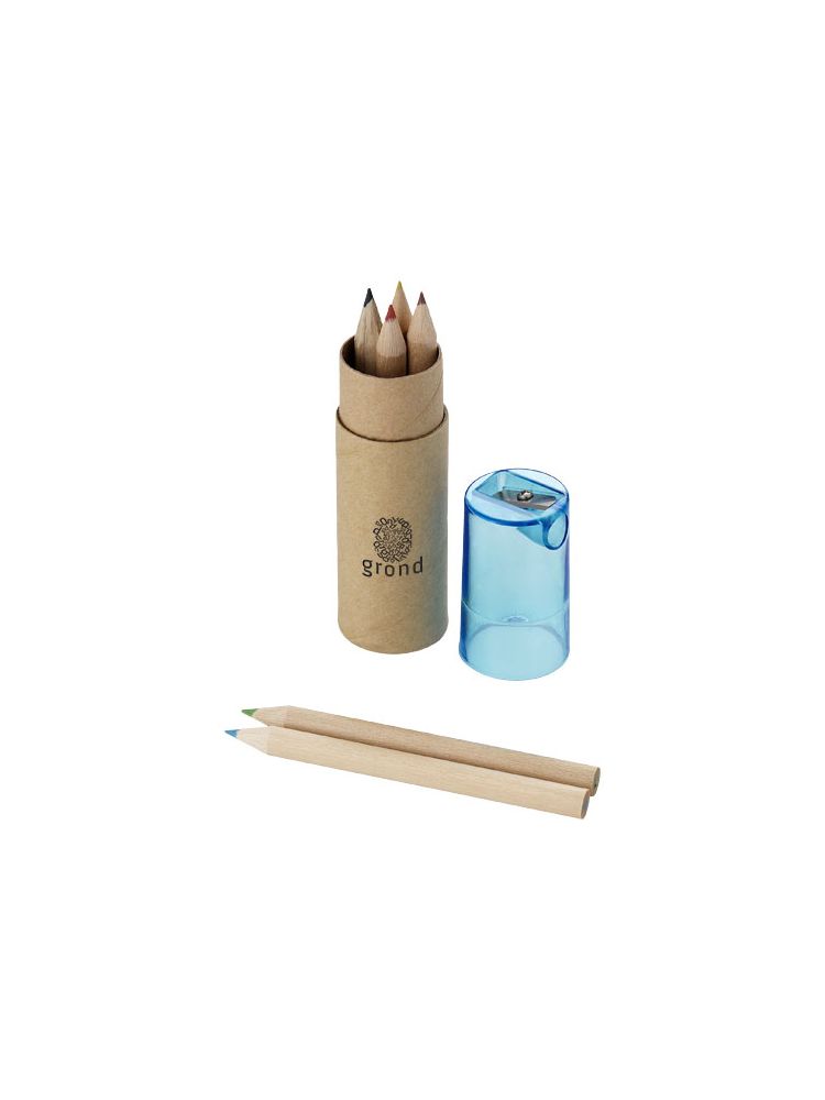 Zestaw 6 kolorowych kredek w tubie z temperówką w wieczku. Nadruk niemożliwy na poszczególnych elementach.