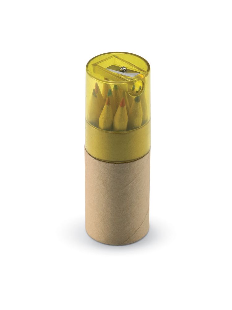 12 sztuk kredek do kolorowania z papieru z recyklingu. Temperówka z przezroczystą pokrywką.