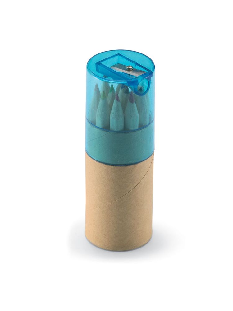 12 sztuk kredek do kolorowania z papieru z recyklingu. Temperówka z przezroczystą pokrywką.