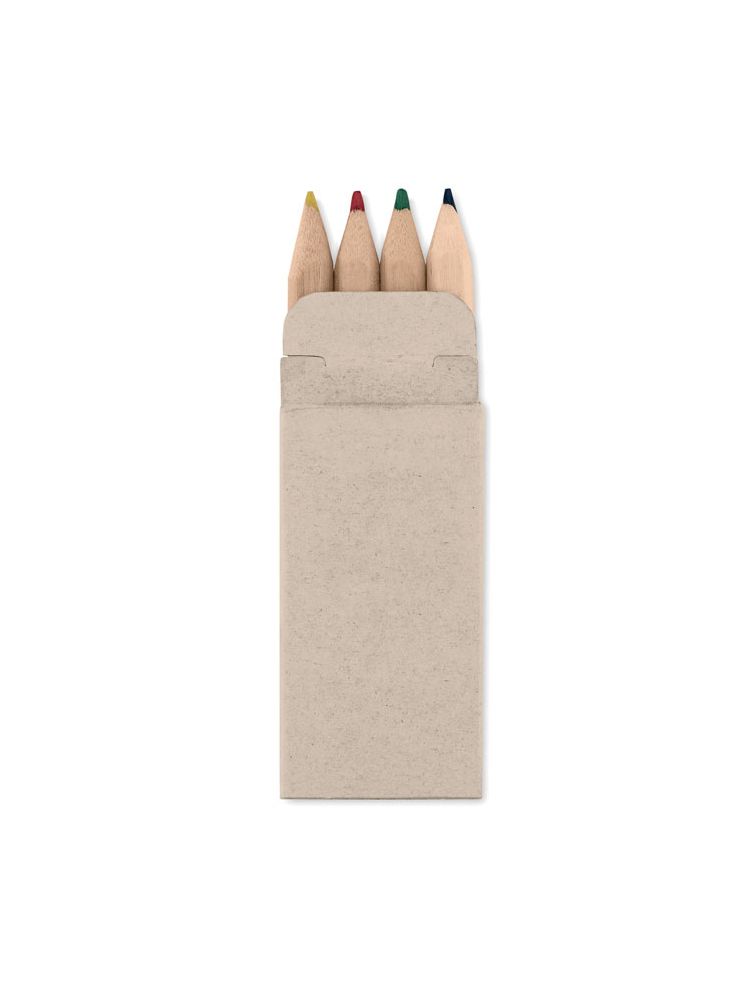 4 kolorowe mini ołówki w kartonowym pudełku z papieru z recyklingu.