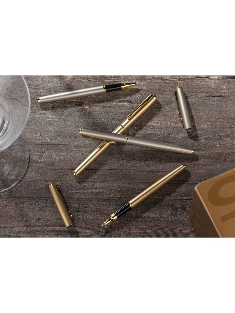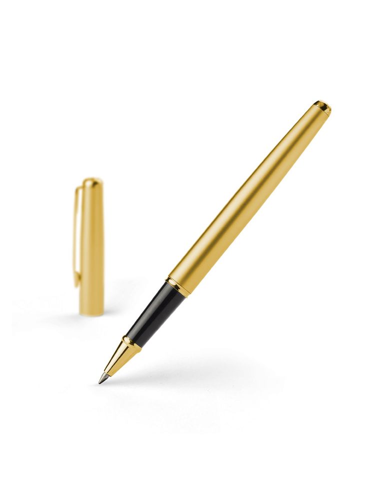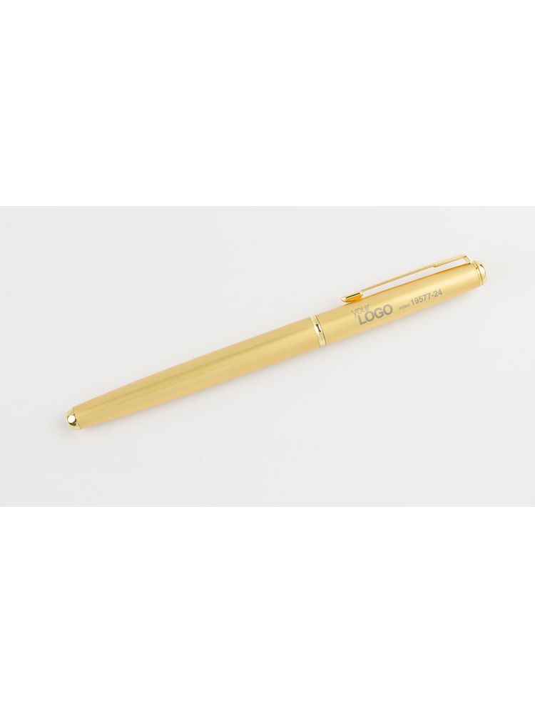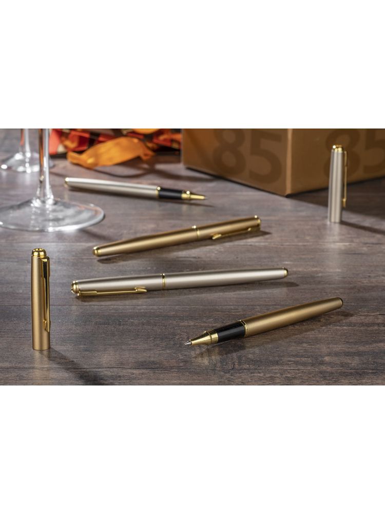Pióro kulkowe wykonane z metalu ze złotymi wykończeniami. Klasyczne wzornictwo zapewnia mu ponadczasową elegancję.
