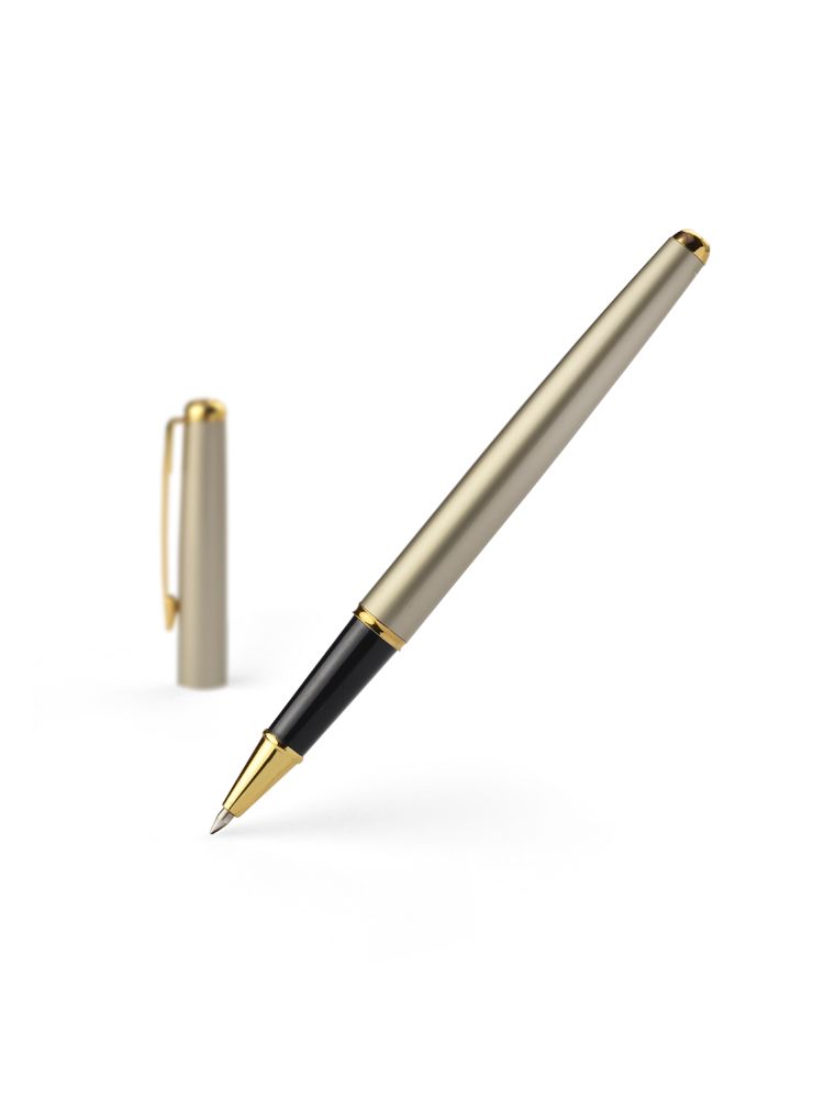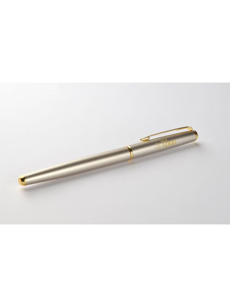 Pióro kulkowe wykonane z metalu ze złotymi wykończeniami. Klasyczne wzornictwo zapewnia mu ponadczasową elegancję.