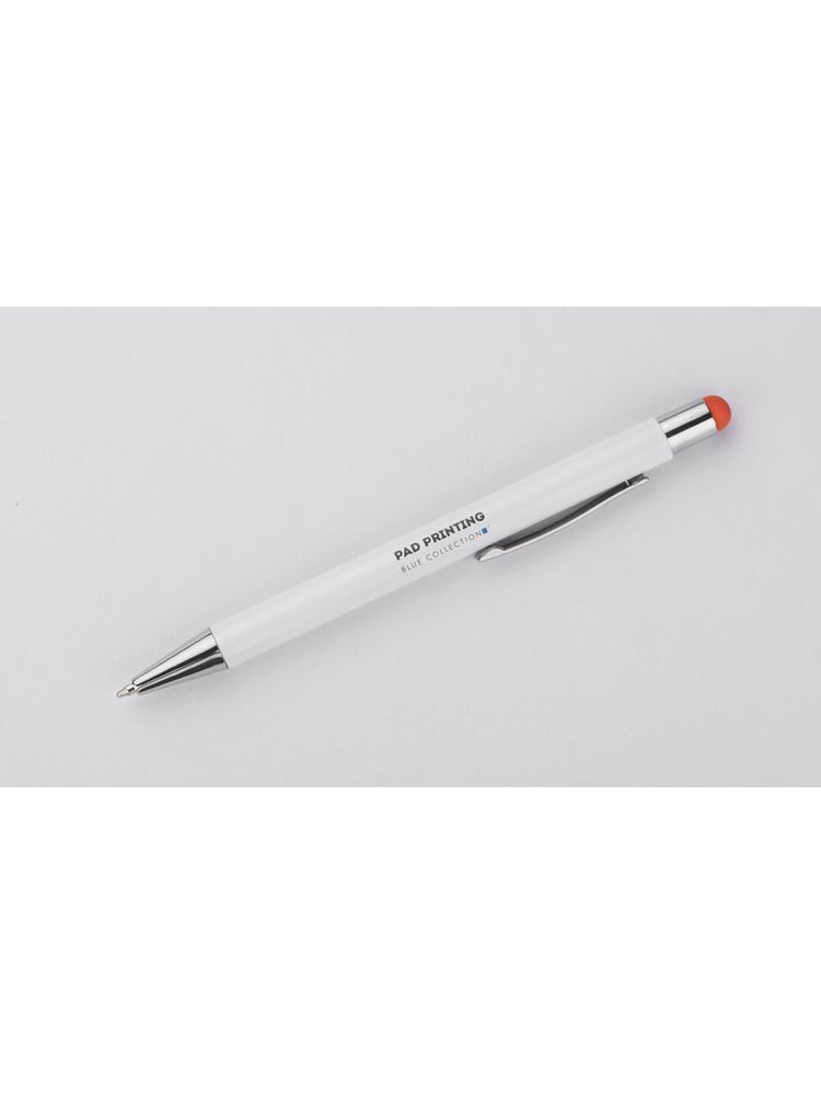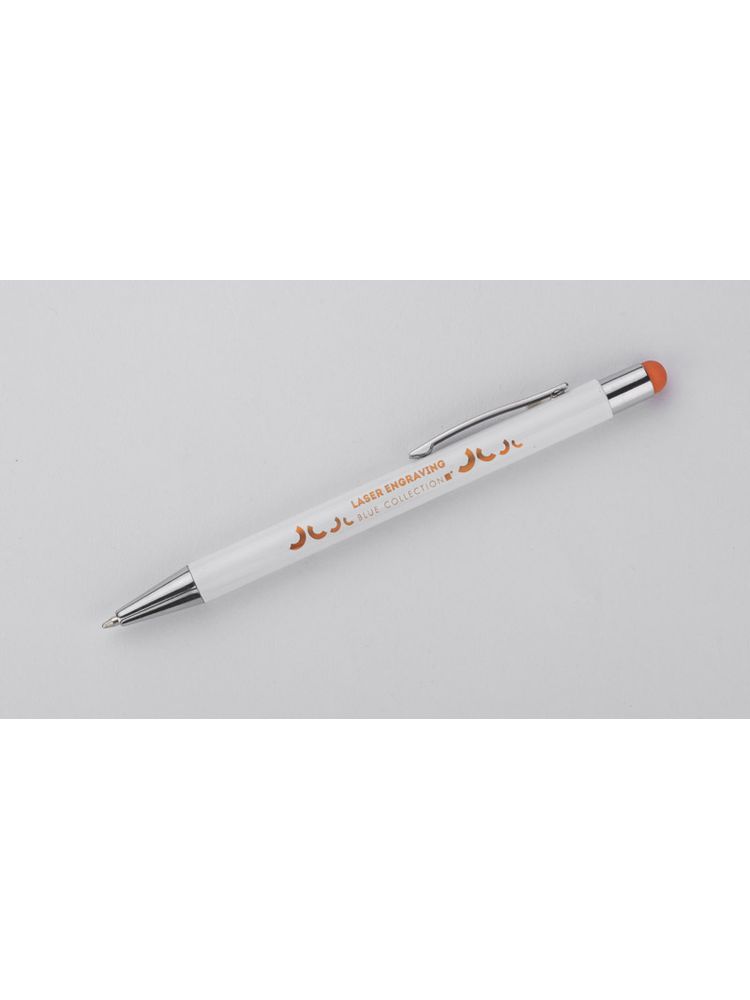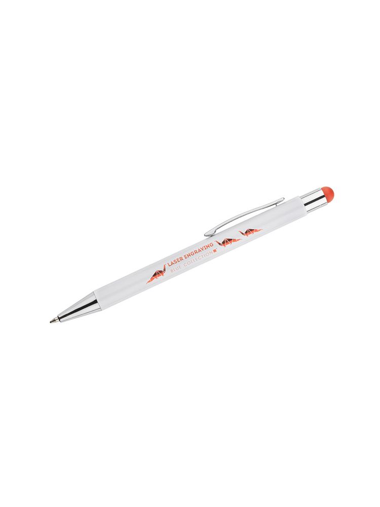 BIANCO to długopis, który zaskakuje efektem znakowania. Kolor grawera jest zbliżony do koloru końcówki touch do obsługi ekranów dotykowych. Korpus wykonany z aluminium pokrytego białą farbą. Długopis automatyczny. Wkład typu G2 w kolorze niebieskim.