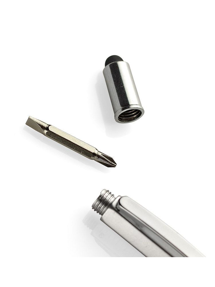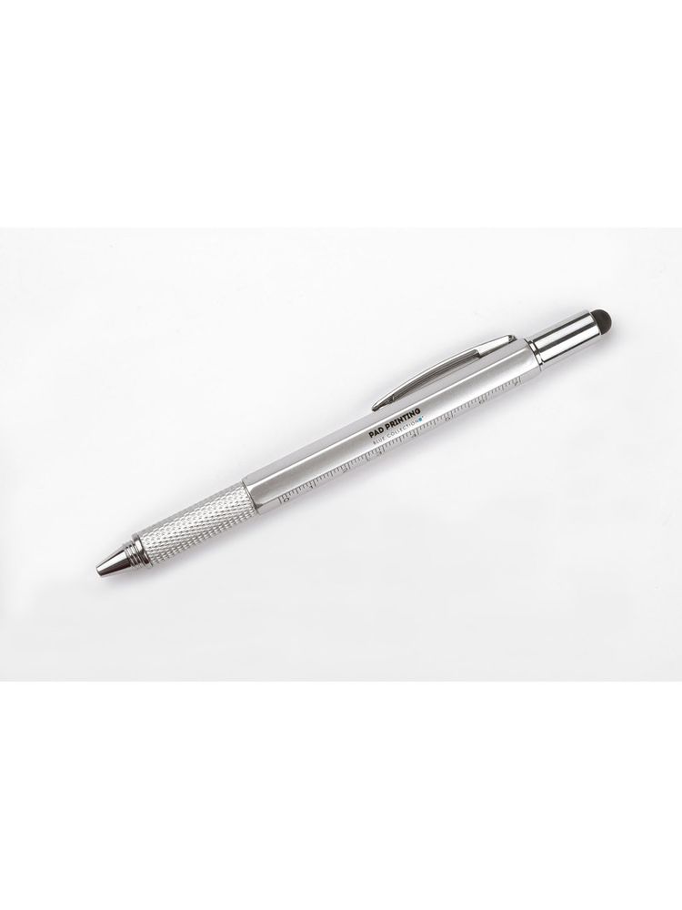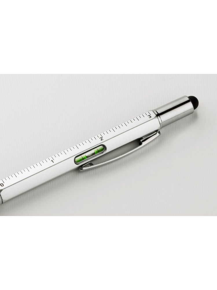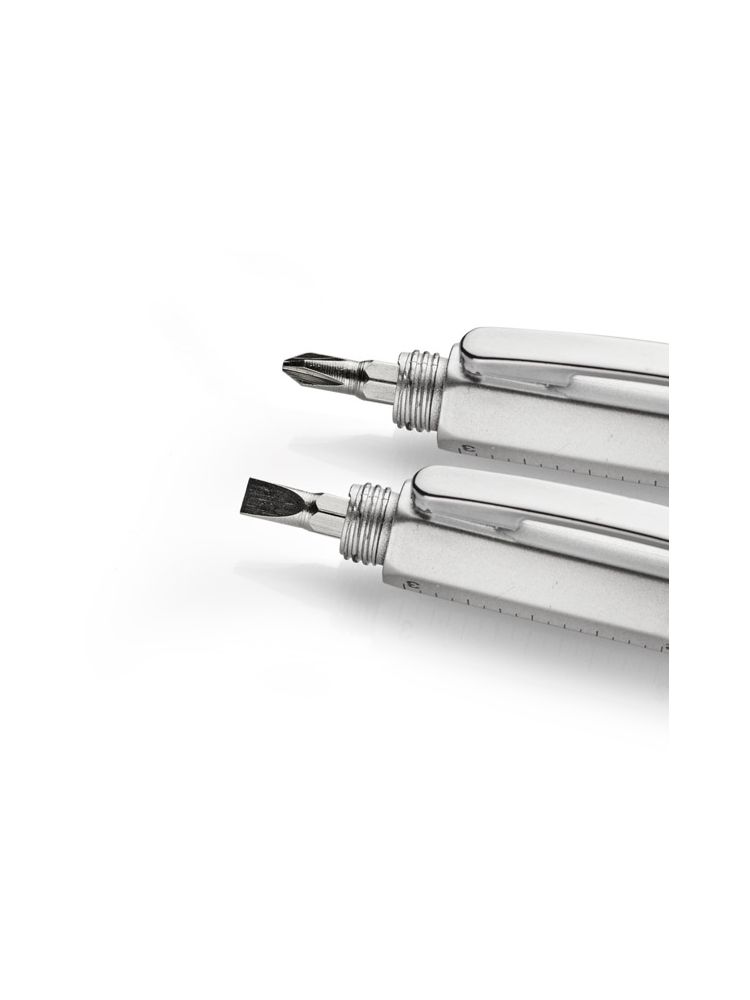 Wielozadaniowy długopis dla każdego fana majsterkowania. Gadżet wyposażony jest w dwie miarki (centymetry i cale) umieszczone na korpusie oraz małą poziomicę. Natomiast pod nakrętką z touch penem znajduje się dwustronny śrubokręt mocowany za pomocą magnesu – poręczny i wygodny w użyciu. Znakowanie możliwe na korpusie.