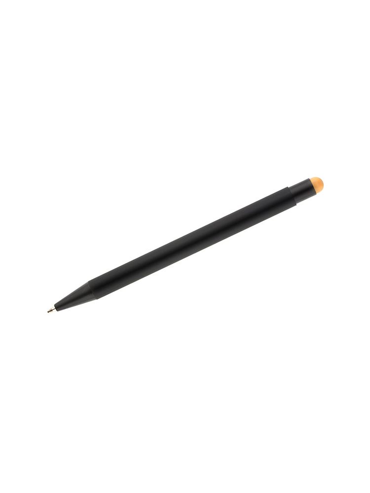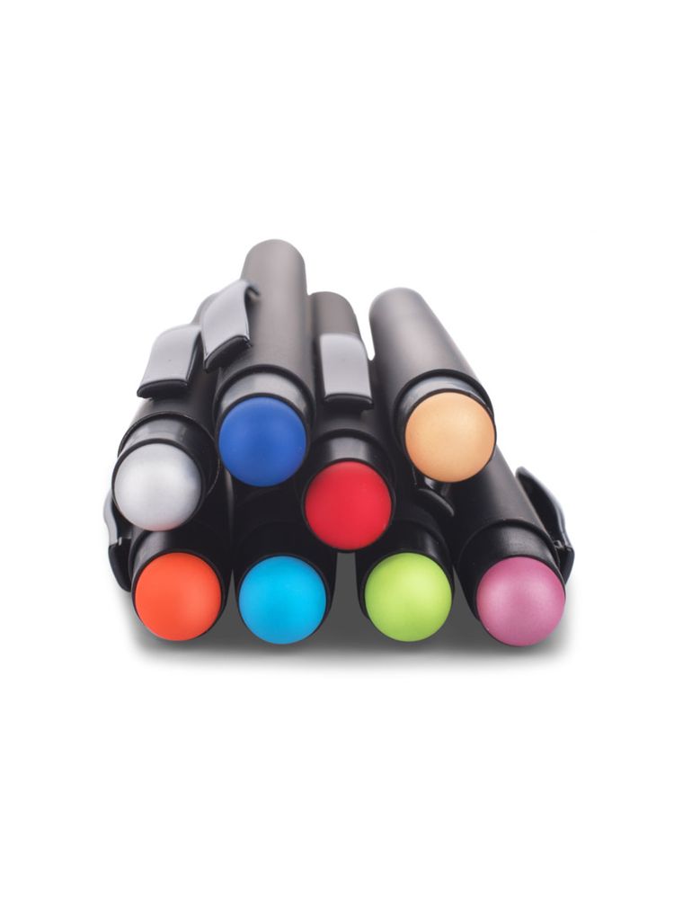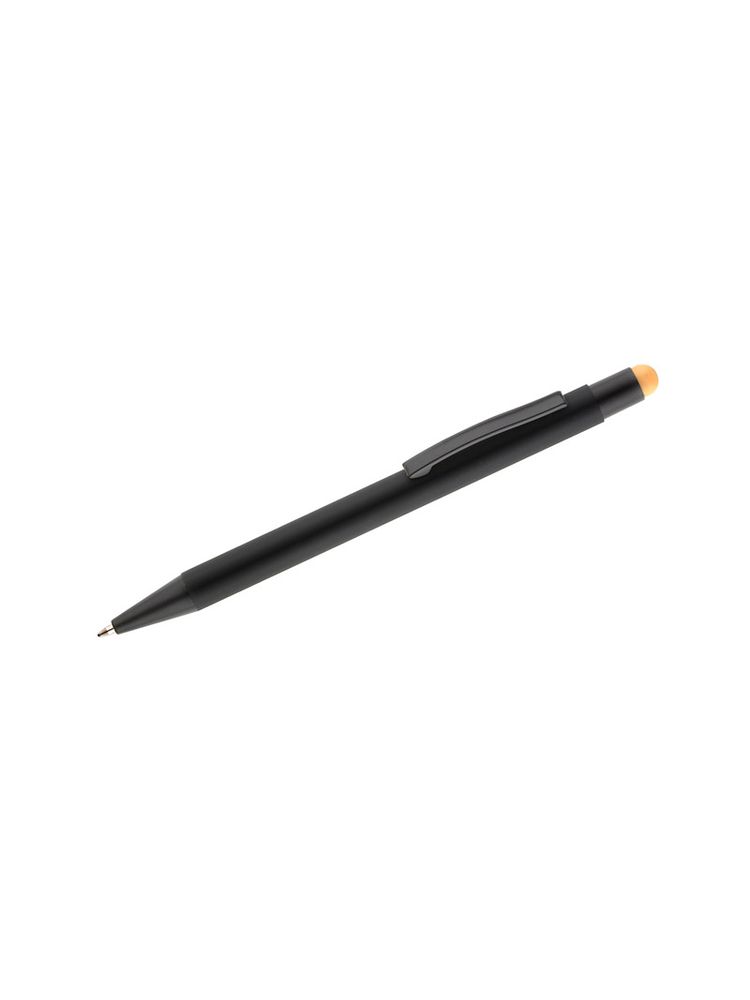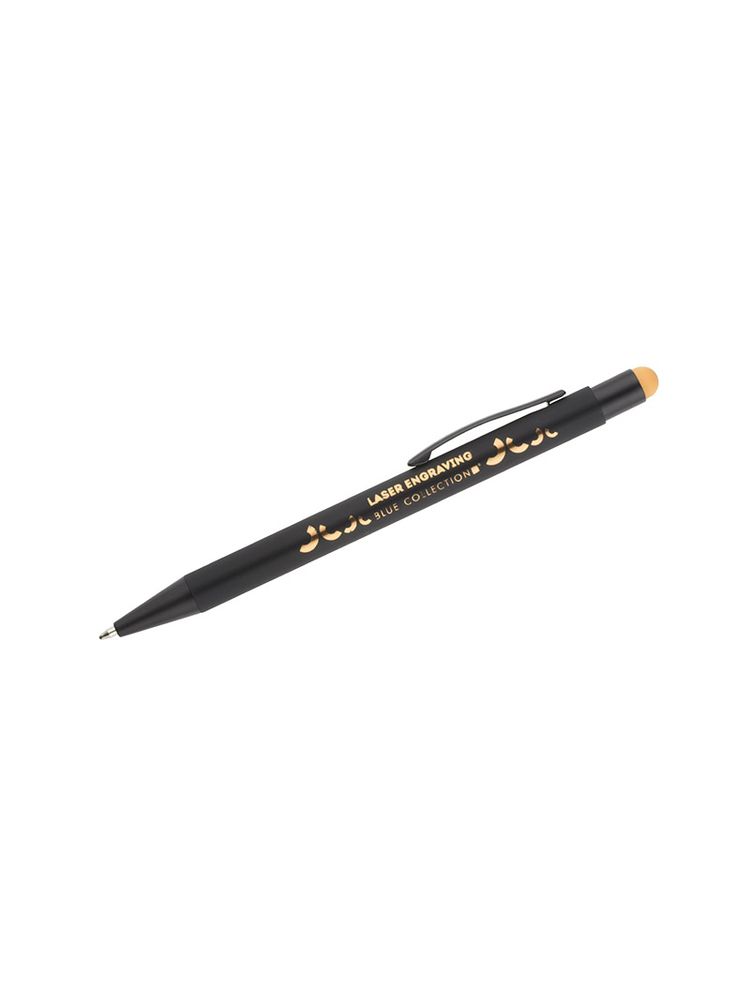 NIRO to długopis z wyjątkowym efektem znakowania. Kolor grawera jest zbliżony do koloru końcówki touch do obsługi ekranów dotykowych. Korpus wykonany z aluminium pokrytego gumowaną powłoką typu soft touch. Wykończenia w kolorze czarnym. Długopis automatyczny. Wkład typu G2 w kolorze niebieskim.