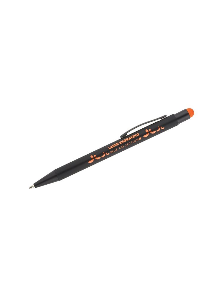 NIRO to długopis z wyjątkowym efektem znakowania. Kolor grawera jest zbliżony do koloru końcówki touch do obsługi ekranów dotykowych. Korpus wykonany z aluminium pokrytego gumowaną powłoką typu soft touch. Wykończenia w kolorze czarnym. Długopis automatyczny. Wkład typu G2 w kolorze niebieskim.