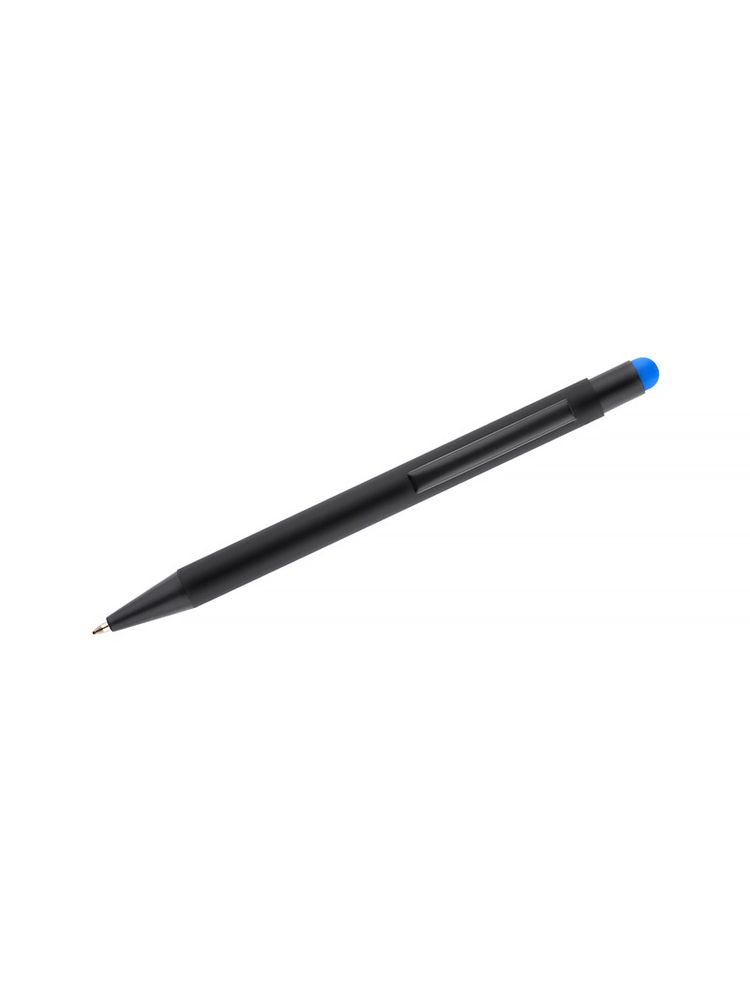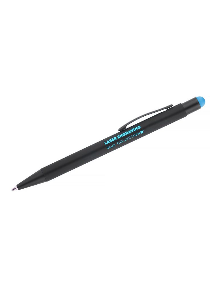 NIRO to długopis z wyjątkowym efektem znakowania. Kolor grawera jest zbliżony do koloru końcówki touch do obsługi ekranów dotykowych. Korpus wykonany z aluminium pokrytego gumowaną powłoką typu soft touch. Wykończenia w kolorze czarnym. Długopis automatyczny. Wkład typu G2 w kolorze niebieskim.