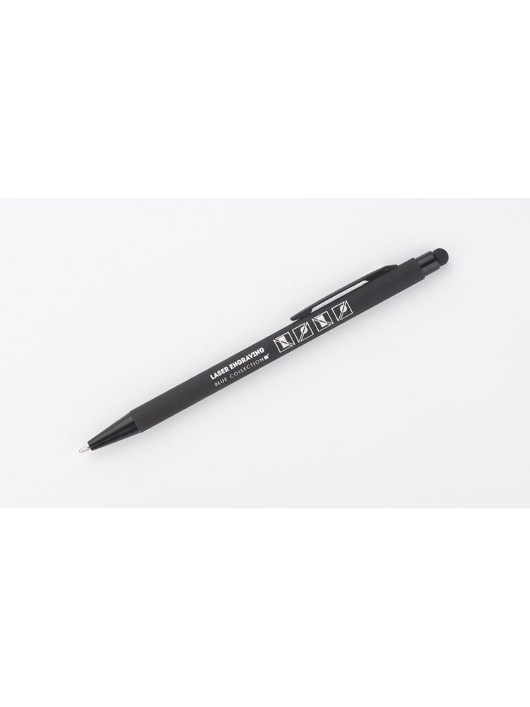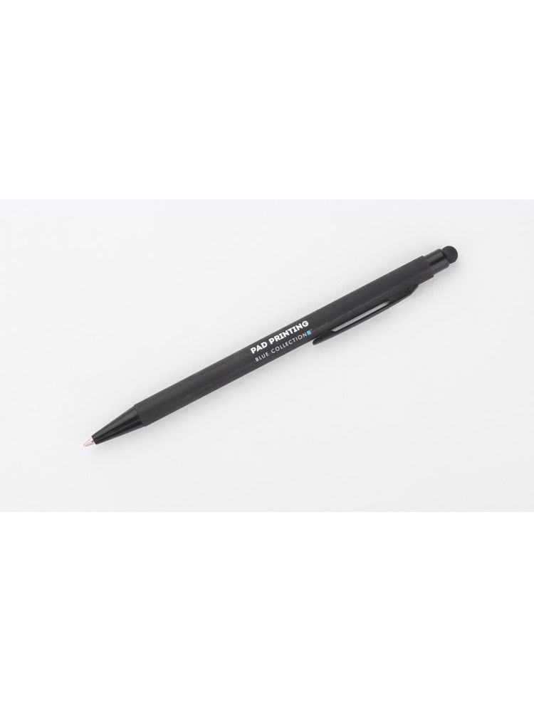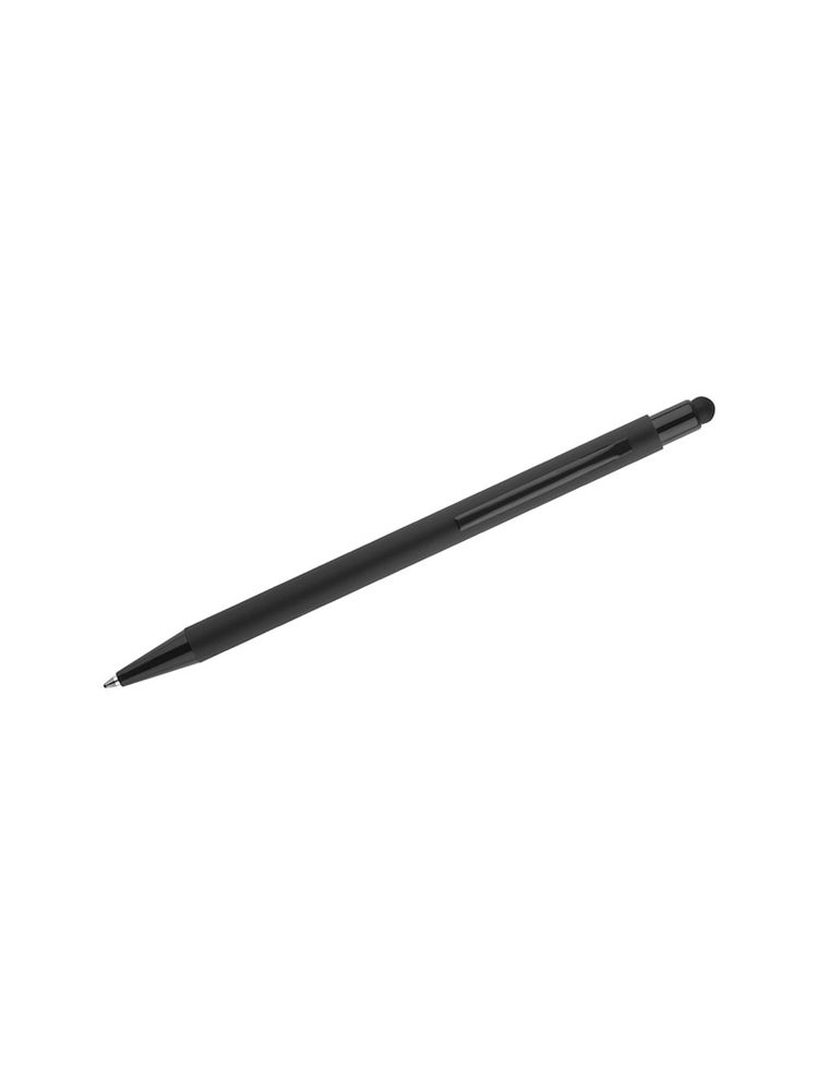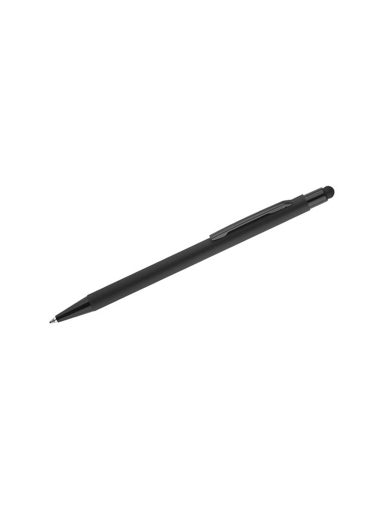 Klasyczny, cienki długopis PRIM wykonany z aluminium pokrytego gumowaną powłoką typu soft touch. Na górze końcówka do obsługi ekranów dotykowych w kolorze dopasowanym do korpusu długopisu. Wykończenia w kolorze czarnym. Długopis automatyczny. Wkład typu X20 w kolorze niebieskim.