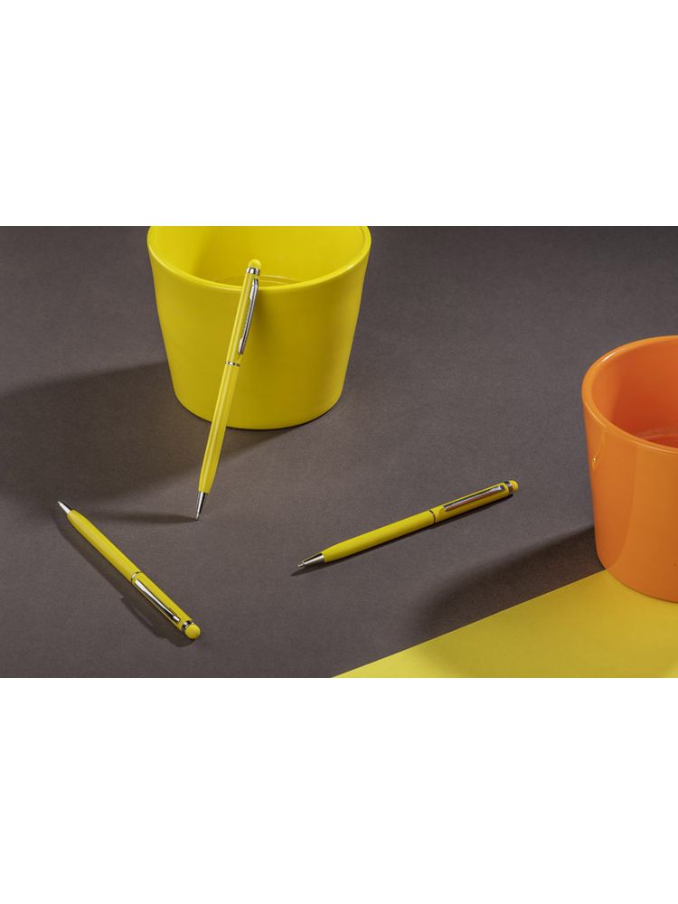 Cienki, metalowy długopis z kolorową końcówką do ekanów dotykowych (touch). Długopis posiada mechanizm typu “twist”. Uwaga – Wkład może się chować w trakcie pisania – Reklamacji na to nie przyjmujemy.