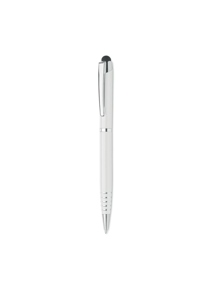 Obrotowy długopis z aluminium pochodzącego z recyklingu z rysikiem do ekranów touch pen. Niebieski tusz.