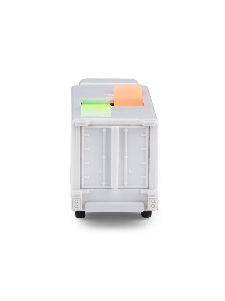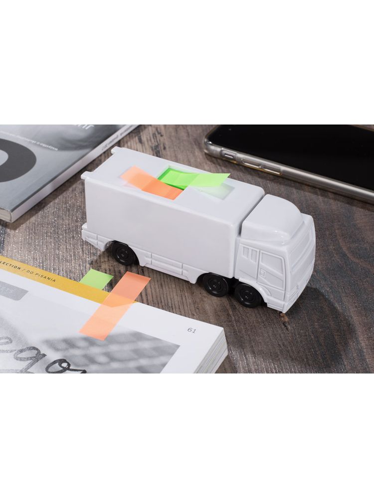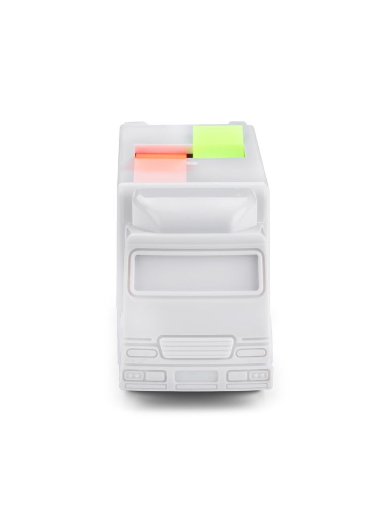 Karteczki samoprzylepne CARGO zawierają foliowe znaczniki w 2 kolorach (2 bloczki po 20 szt.). Atrakcyjny wygląd podajnika w kształcie ciężarówki jest ciekawą ozdobą biurka. Wykonany z tworzywa.