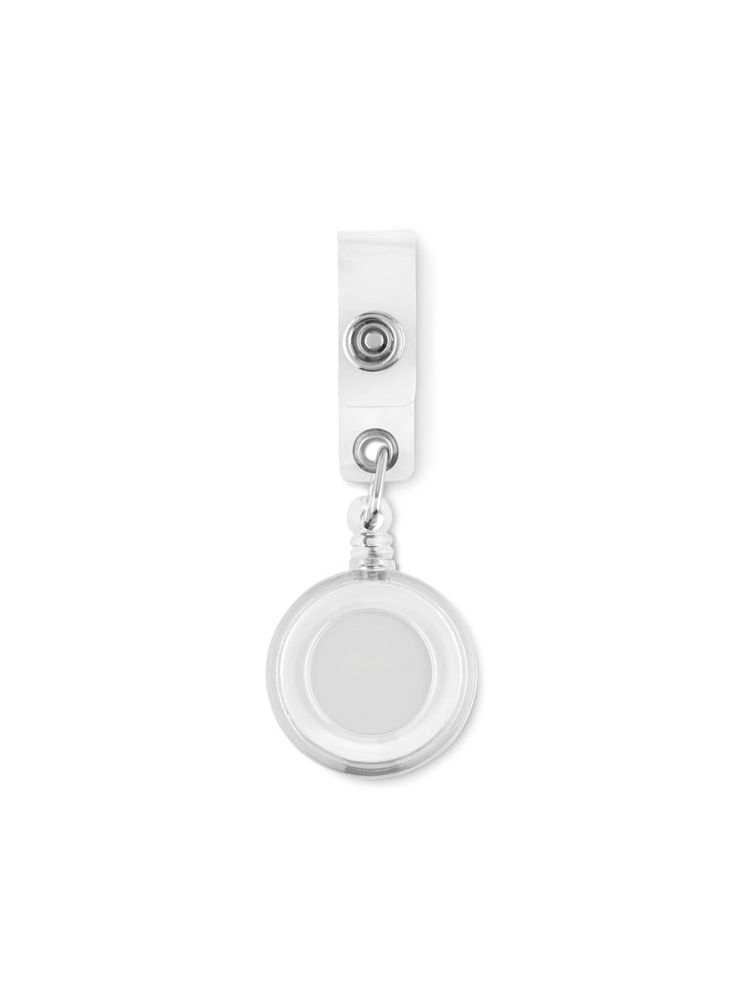 Zawieszka do plakietki w przezroczystych kolorach, z metalowym klipsem.