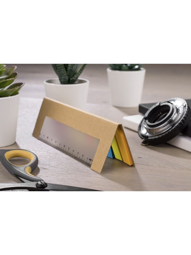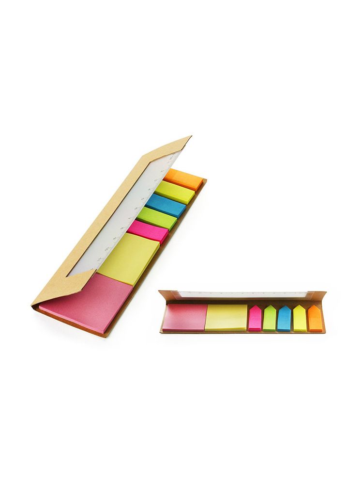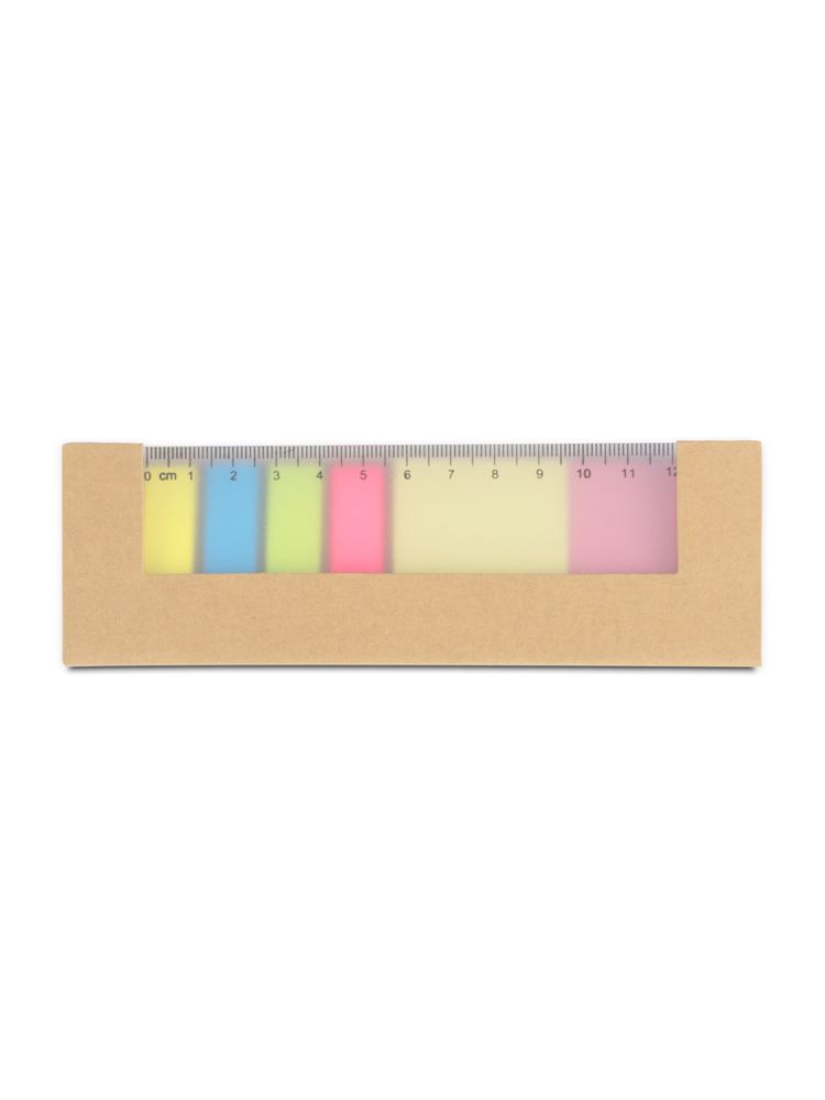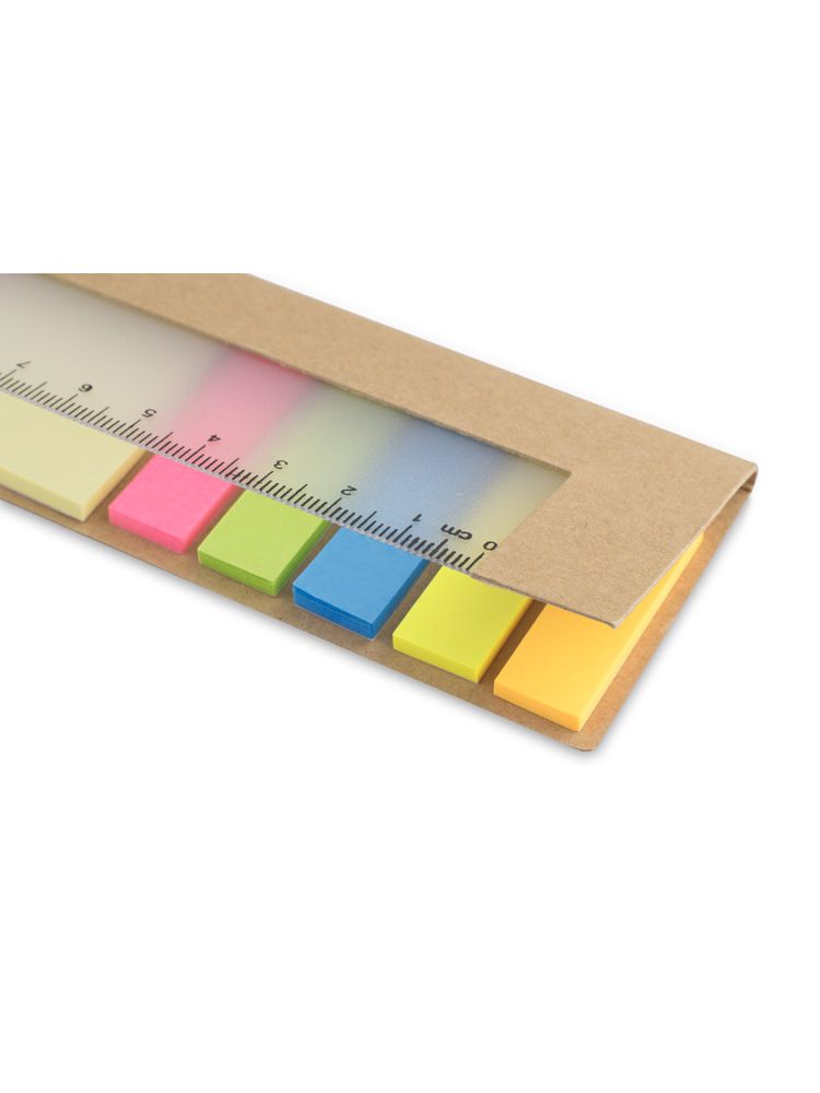 Podręczny zestaw składający się z kolorowych karteczek samoprzylepnych i linijki. Niezbędny na każdym biurku.