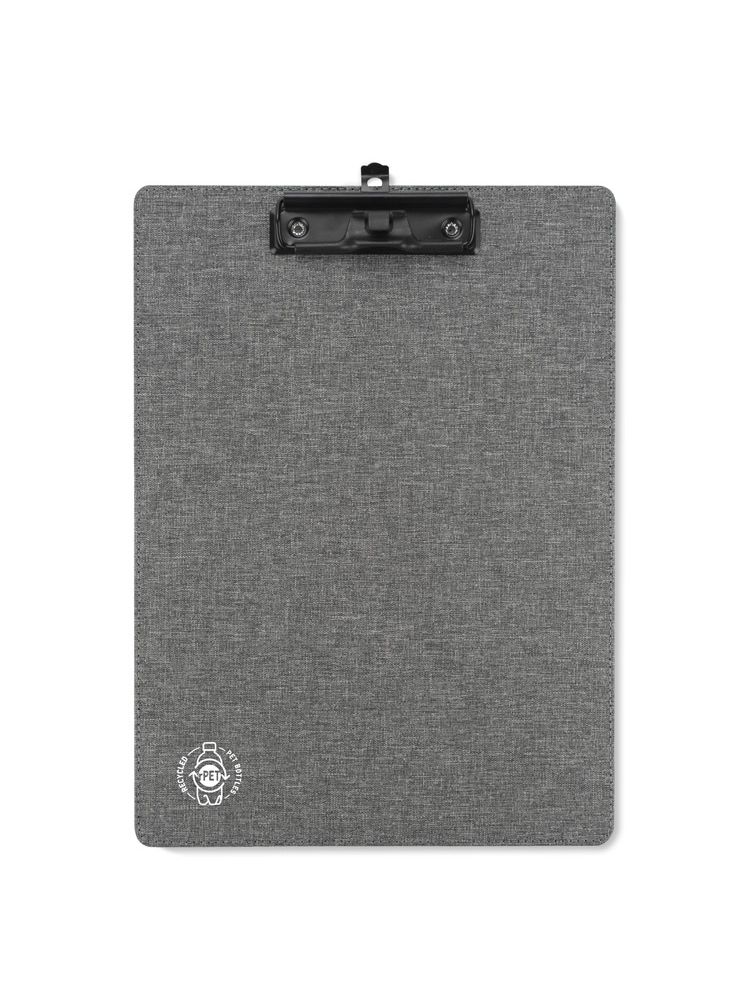 Podkładka CLIPAD to gadżet niezbędny na wszelkie konferencje czy spotkania biznesowe. W wygodny sposób można przechowywać najpotrzebniejsze dokumenty które potrzebujemy mieć przy sobie. Podkładka posiada także wieszaczek umożliwiający jej powieszenie. Wykonana z recyklingowanego tworzywa rPET.