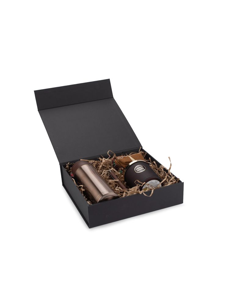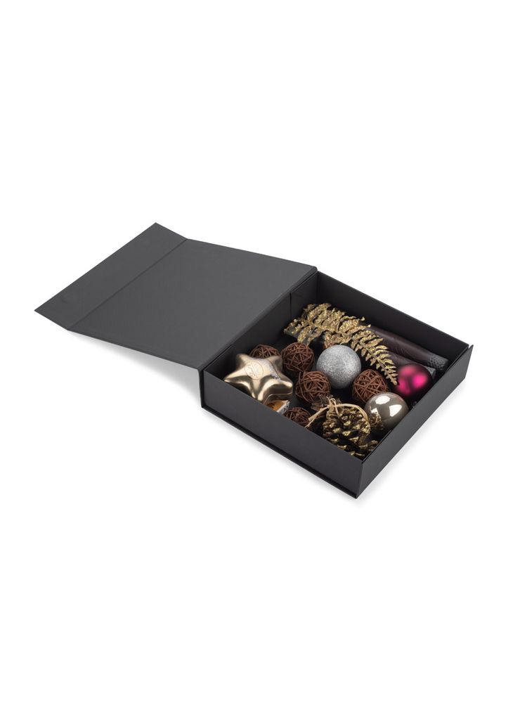 Eleganckie pudełko MAGIC M to idealna baza do stworzenia własnej kompozycji prezentowej. Wystarczy dołożyć wybrane produkty aby w łatwy sposób stworzyć oryginalny zestaw podarunkowy. Pudełko rozkłada się na płasko.