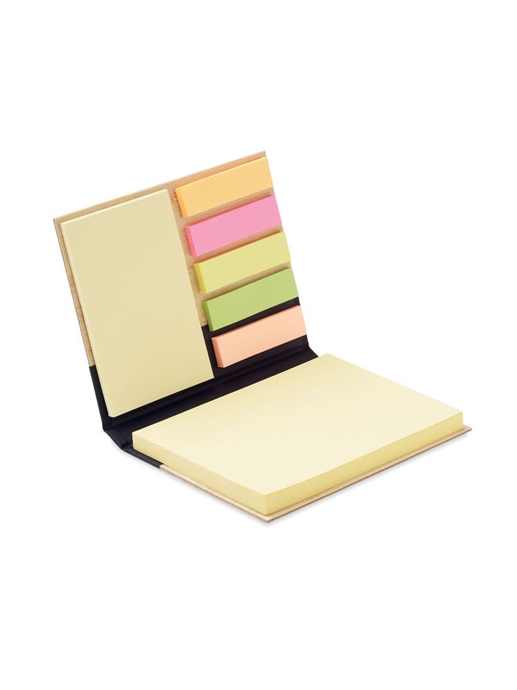 3 różne rodzaje karteczek samoprzylepnych z bambusową okładką. Świetny niezbędnik biurowy do zapisywania wszystkich ważnych notatek ze spotkań. Dzięki temu możesz pracować w sposób zorganizowany i nigdy nie zapomnisz o terminie. Posiada duże i średnie żółte karteczki samoprzylepne oraz 5 kolorowych znaczników. Bambusowa okładka nadaje notatnikowi naturalny wygląd. Bambus jest produktem naturalnym, mogą wystąpić niewielkie różnice w kolorze i rozmiarze poszczególnych elementów, co może mieć wpływ na końcowy efekt dekoracji. Rozmiar 8×10,5 cm. FSC®-certified | FSC MIX, P7.7, FSC-C213206