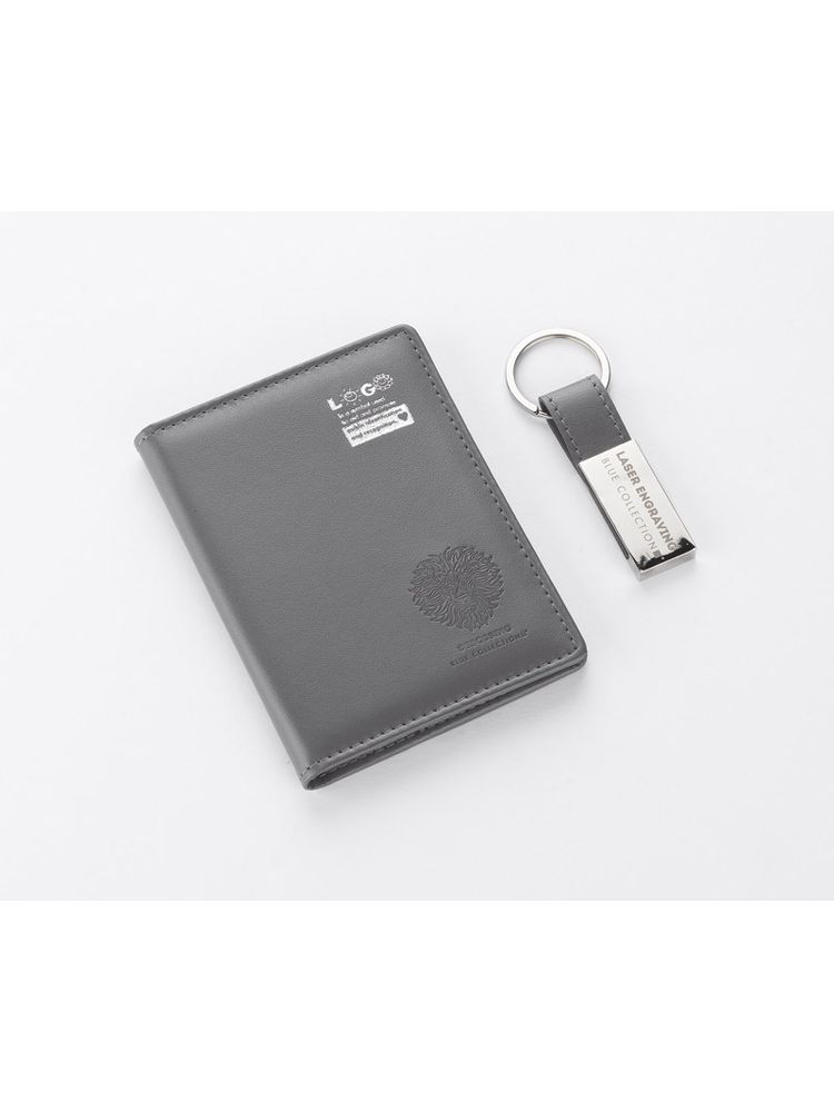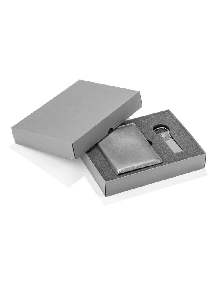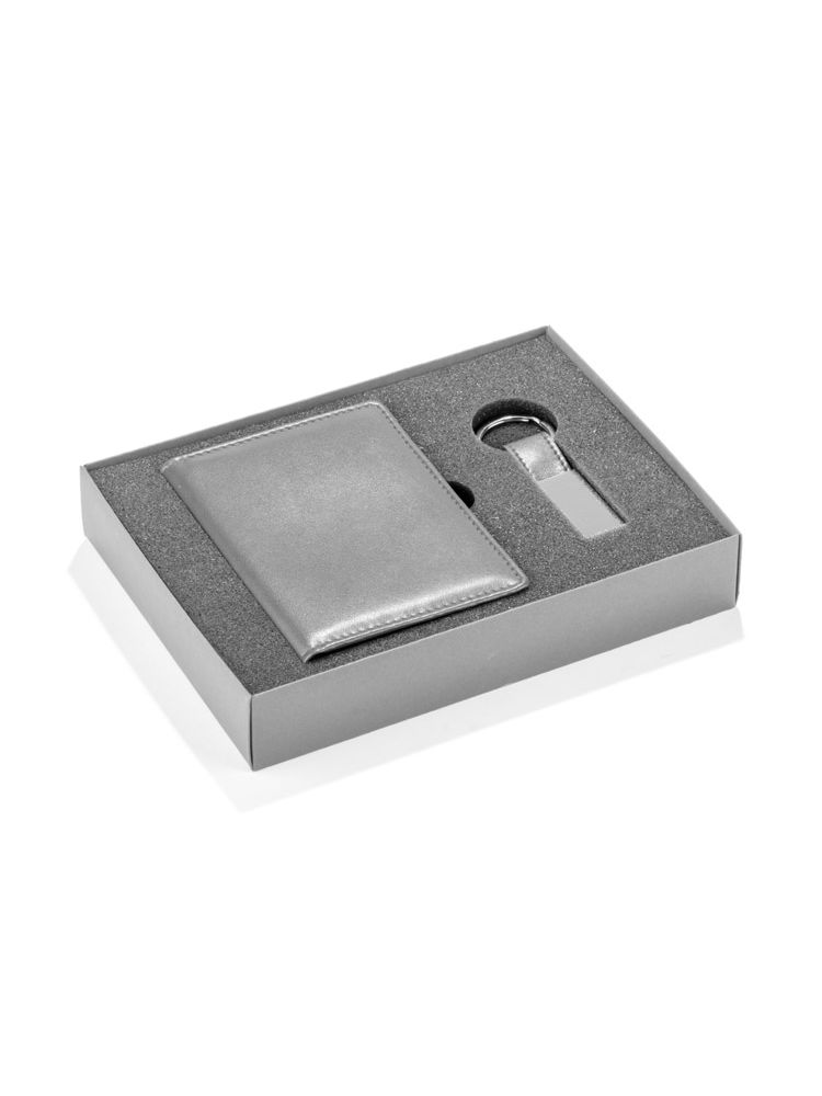 Zestaw CAMERON wykonany jest z ekoskóry. Składa się z breloka oraz etui na dokumenty, które zapakowane są w pudełko wykonane z papieru. Kolor pudełka jest taki sam jak wnętrze zestawu, dzięki czemu tworzy spójną całość.