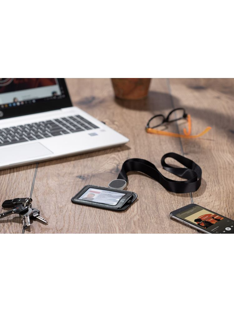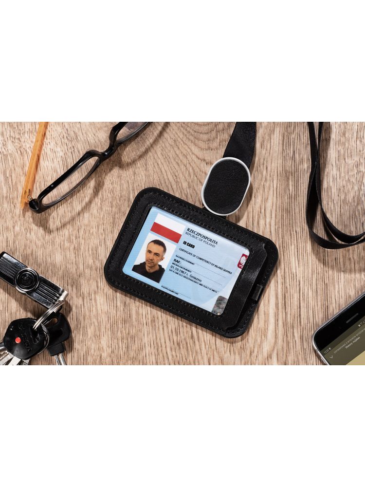 Etui na identyfikator TINO to gadżet, który zapewni Ci wygodę użytkowania każdego identyfikatora czy karty dostępu. Wykonany z wytrzymałej eko skóry z ozdobnymi przeszyciami. Dzięki rozwijanej smyczy o długości 34 cm nie będziesz musiał się schylać do czytnika czy okazania przepustki. Identyfikator zawieszony na szerokiej, przyjemnej w dotyku taśmie o długości 86cm. Posiada możliwość zmiany ułożenia z pionowego na poziome poprzez proste przepięcie zapinki smyczy. Dodatkowa kieszonka na tyle pozwoli na trzymanie wizytówek.