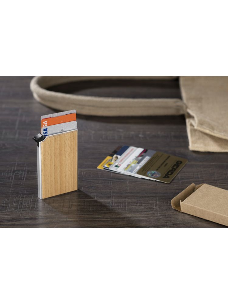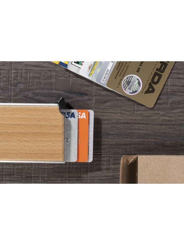RENE to praktyczny gadżet ułatwiający bezpieczne przechowywanie kart kredytowych. Dzięki funkcji RFID zabezpiecza przed kradzieżą danych z kart płatniczych. Etui wykonane jest z aluminium z dodatkiem drewna. To minimalistyczne połączenie, bardzo estetyczne i eleganckie. Etui pomieści 6 kart. Pakowne w brązowy kartonik.