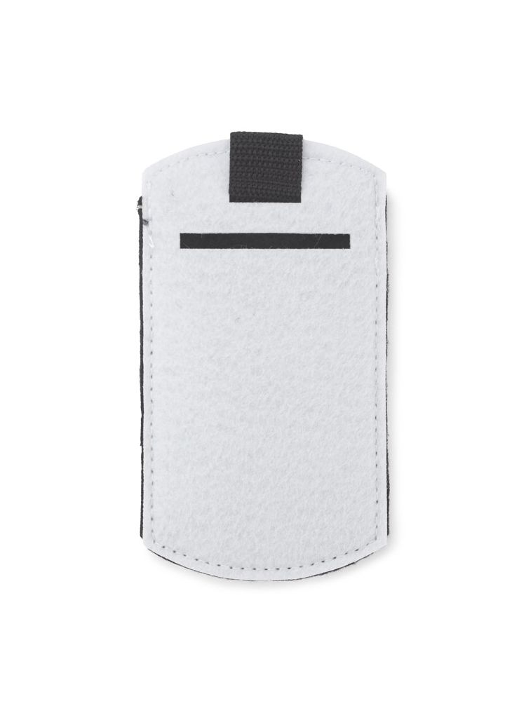 Etui na smartfona wykonane z modnego filcu, posiadające zapięcie na rzep. Pociągając za paseczek z łatwością wysuniemy smartfona z etui. Wyposażone jest w małą kieszonkę, znajdującą się z tyłu, w której możemy schować np. kartę pamięci. Logo naniesiemy metodą termotrasferu lub też wygrawerujemy.