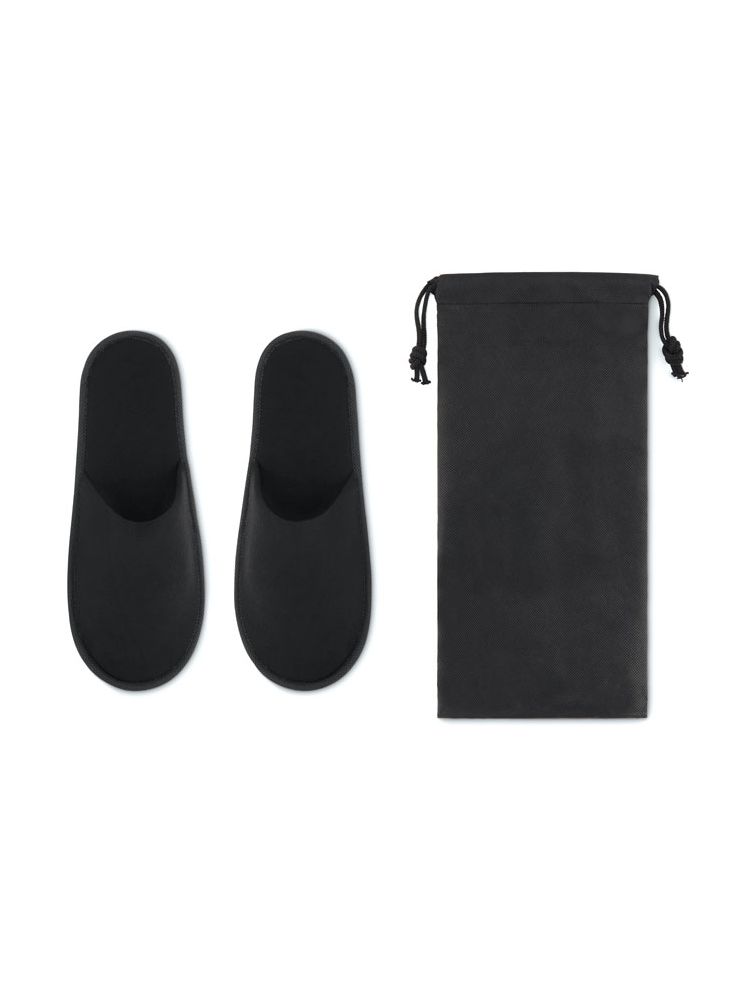 Para poliestrowych kapci hotelowych w etui z włókniny. Rozmiar EUR 43 – 44.
