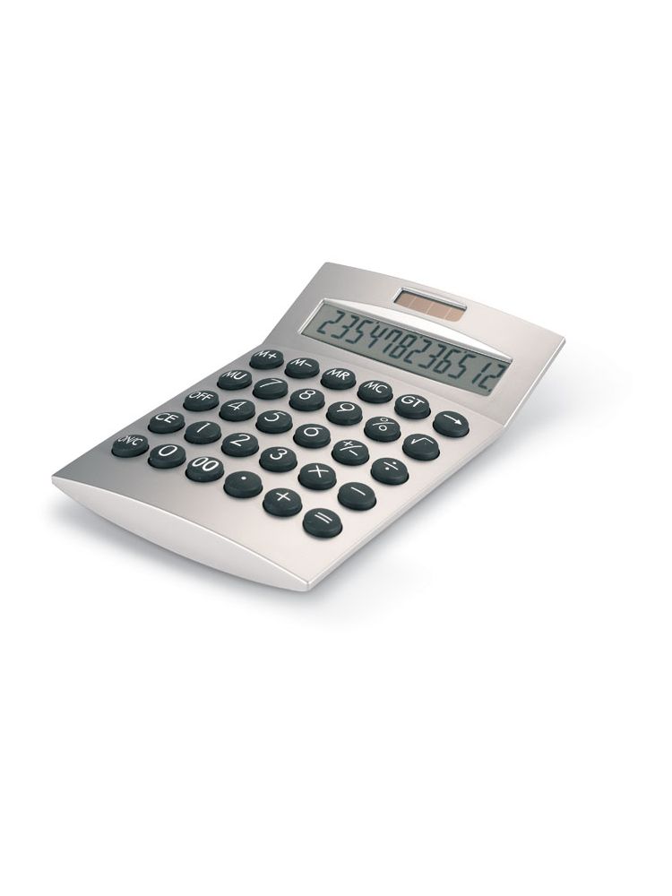 12-cyfrowy kalkulator na baterie słoneczne. Obudowa plastikowa. 1 bateria dołączona.