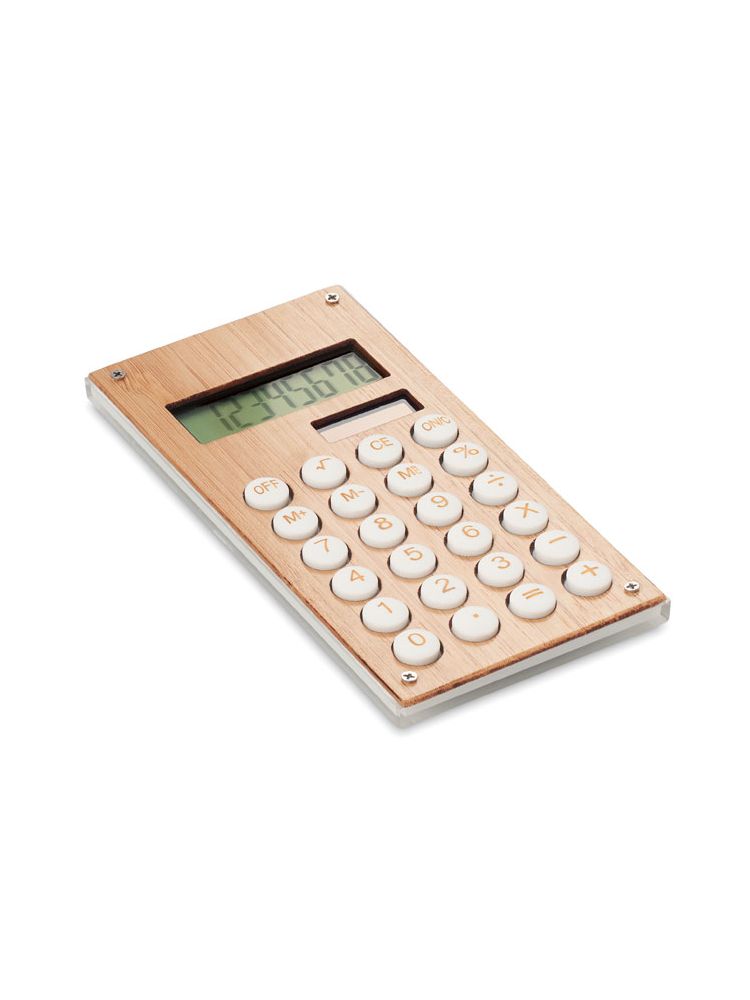8-cyfrowy kalkulator z podwójnym zasilaniem, ABS, bambusowa obudowa. W zestawie 1 bateria (LR1131). Bambus jest produktem naturalnym, dlatego mogą wystąpić nieznaczne różnice w kolorze, wzorze i rozmiarze.