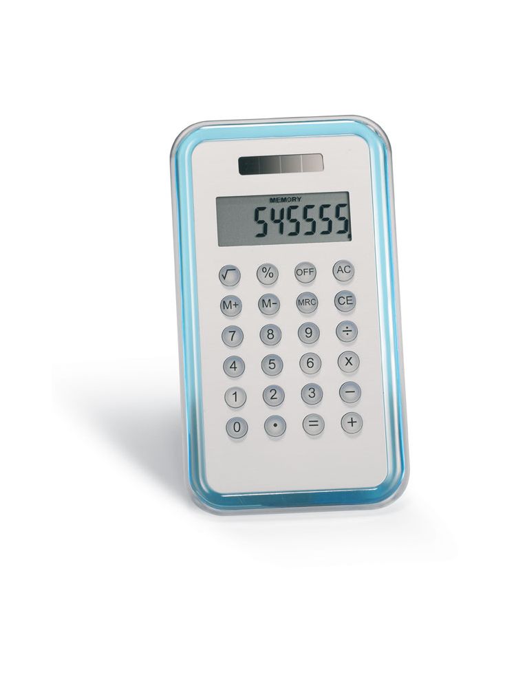 Kalkulator z wyświetlaczem na 8 pozycji, podwójnie zasilany, akryl i aluminium. 1 bateria dołączona.