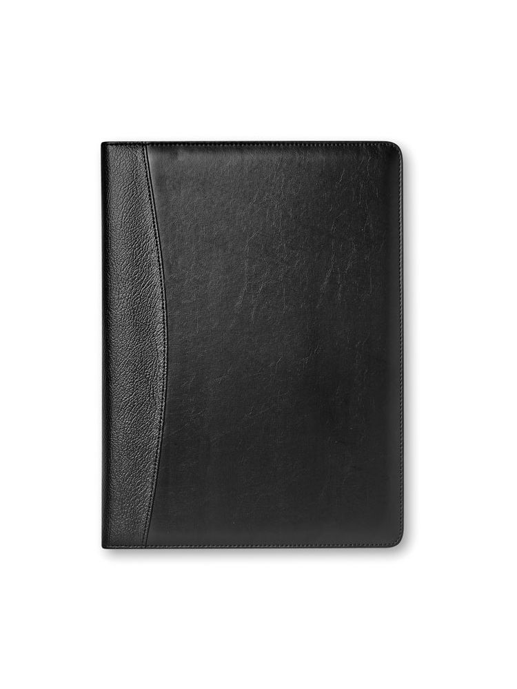 Teczka A4 z imitacji skóry. Z notesem w linie (20 kartek), kalkulatorem na baterię słoneczną, długopisem z niebieskim wkładem.