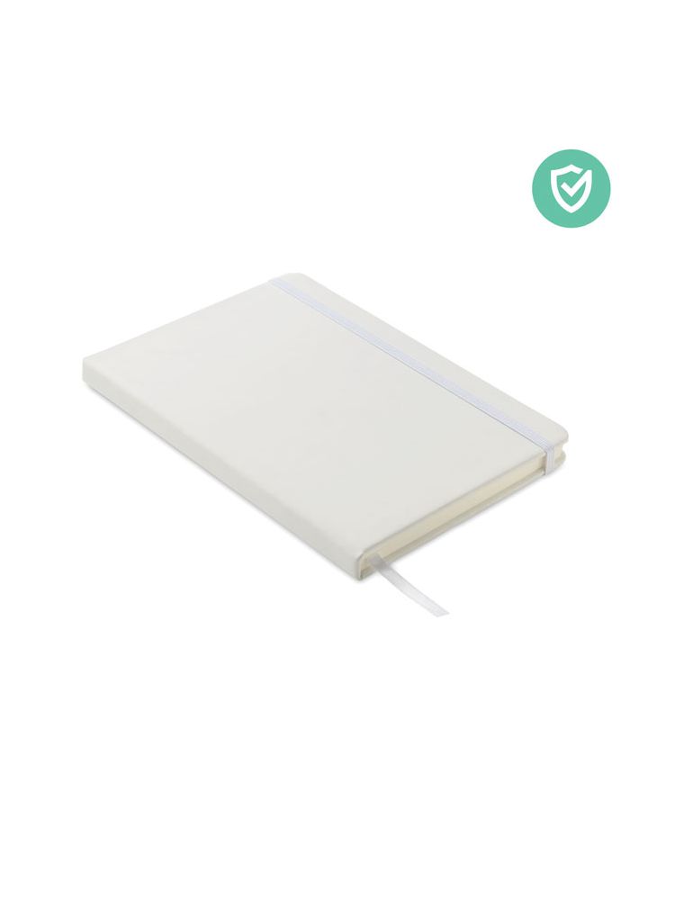 Notatnik A5 z antybakteryjną twardą okładką z PU. Powłoka ta zawiera specjalny dodatek (nanosrebro), który zapobiega kolonizacji bakterii na powierzchni notatnika. 96 kartek w linie (70 gr) zapewnia wystarczająco dużo miejsca, aby zapisać wszystkie ważne notatki. Elastyczne zamknięcie sprawia, że notatnik pozostaje zamknięty podczas podróży, a wstążka pozwala łatwo znaleźć ostatnio zapisaną notatkę. ISO 22196. FSC®-certified | FSC MIX CREDIT, P7.1, FSC-C213206