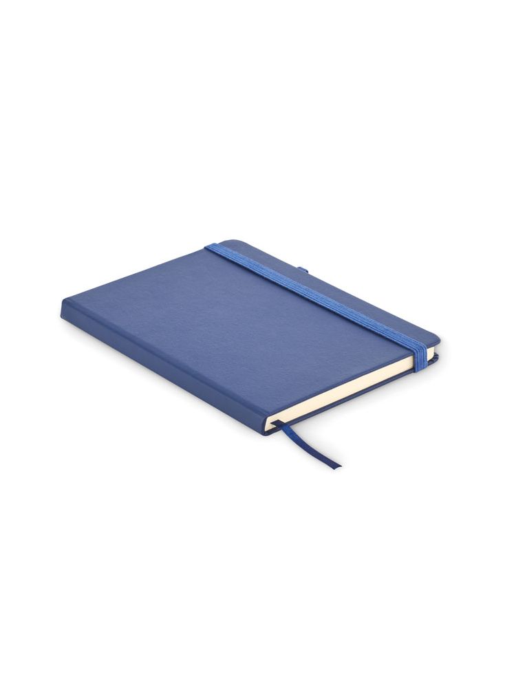 Notatnik A5 z okładką wykonaną w 70% ze skóry pochodzącej z recyklingu i w 30% z lateksowego PU. Obwoluta. 192 stron w linie na papierze z recyklingu (96 arkuszy). Dopasowany elastyczny bawełniany pasek i uchwyt na długopis.