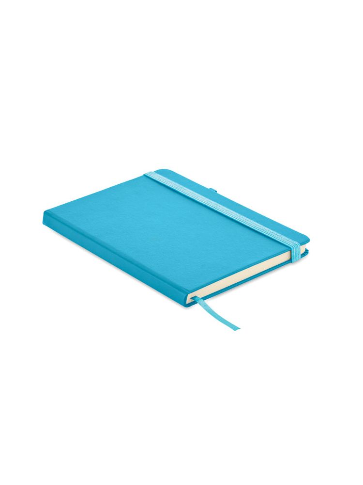 Notatnik A5 z okładką wykonaną w 70% ze skóry pochodzącej z recyklingu i w 30% z lateksowego PU. Obwoluta. 192 stron w linie na papierze z recyklingu (96 arkuszy). Dopasowany elastyczny bawełniany pasek i uchwyt na długopis.