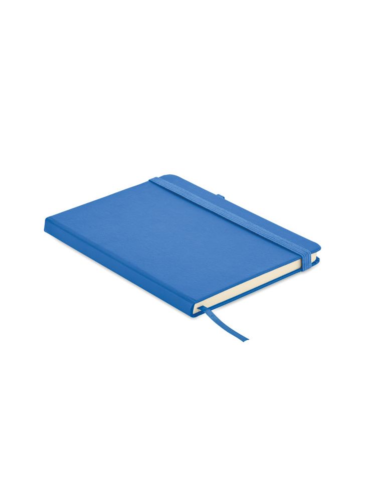 Notatnik A5 z okładką wykonaną w 70% ze skóry pochodzącej z recyklingu i w 30% z lateksowego PU. Obwoluta. 192 stron w linie na papierze z recyklingu (96 arkuszy). Dopasowany elastyczny bawełniany pasek i uchwyt na długopis.