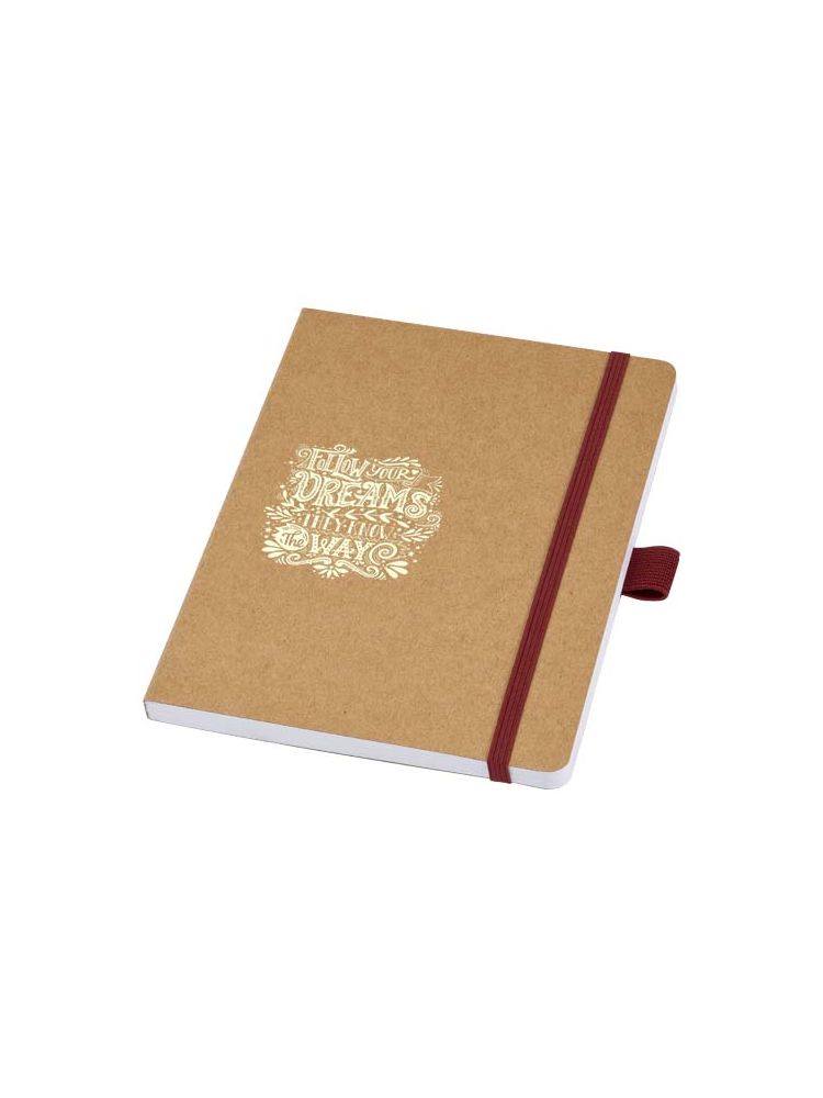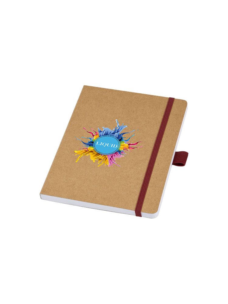 Notatnik z papieru z recyklingu (70 g/m²) z zaokrąglonymi narożnikami, kolorową gumką i pętelką na długopis, która pasuje do 107384 kolorów długopisu.