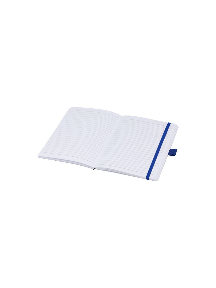 Notatnik z papieru z recyklingu (70 g/m²) z zaokrąglonymi narożnikami, kolorową gumką i pętelką na długopis, która pasuje do 107384 kolorów długopisu.