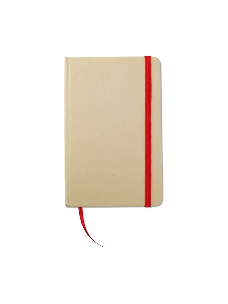Notatnik A6 z twardą okładką z papieru z recyklingu. Oprawa kartonowa. 192 strony z czystego papieru makulaturowego (96 arkuszy). Elastyczny pasek zamykający i zakładka ze wstążki. FSC®-certified | FSC MIX CREDIT, P7.1, FSC-C213206