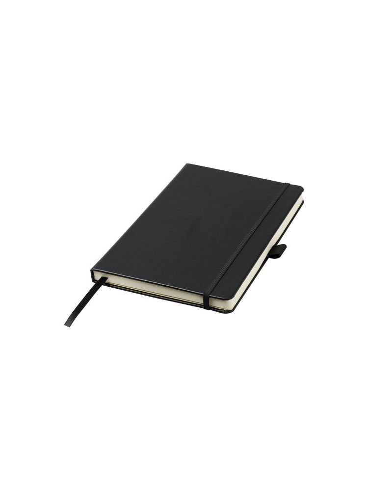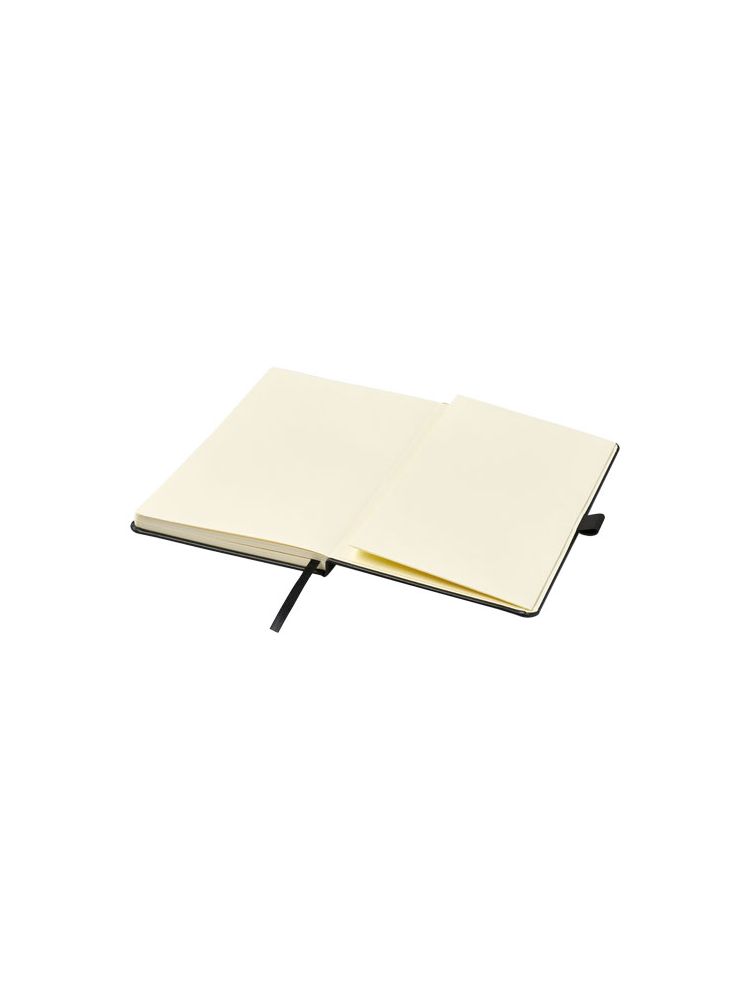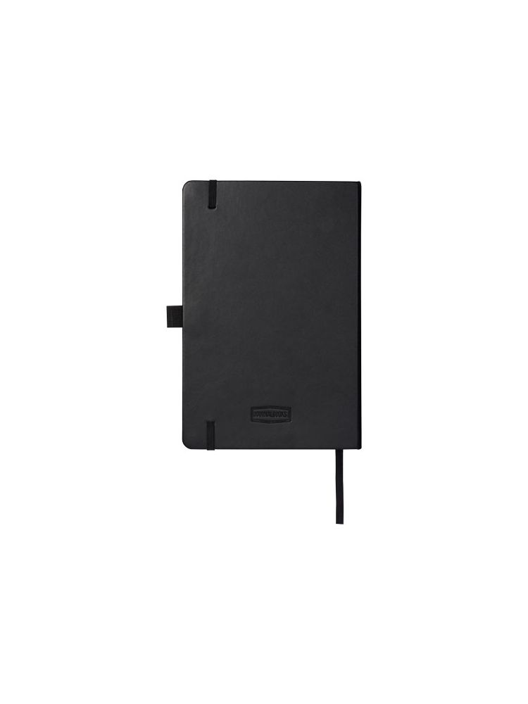 Notatnik skóropodobny z imitacji skóry A5 (14,2 cm x 21,4 cm) z elastyczną gumką, zakładką, pętlą na pióro i harmonijkową tylną kieszenią. Zawiera 96 arkuszy papieru w linie w gramaturze 80 g/m2 i jest oferowany w białej obwolucie typu Journalbook.