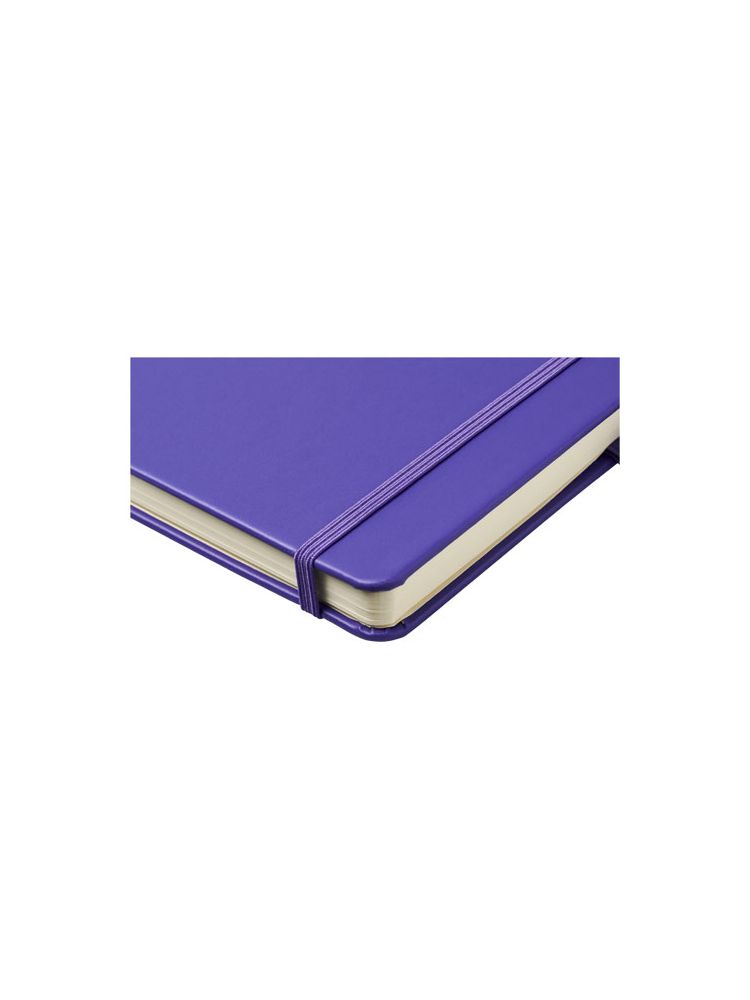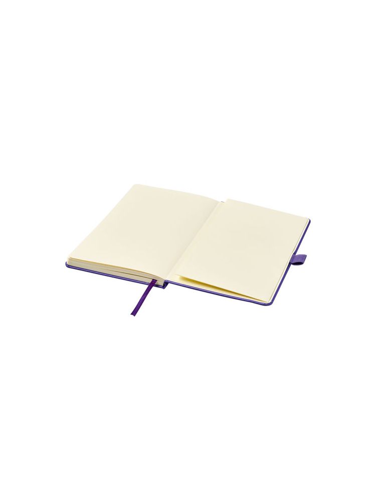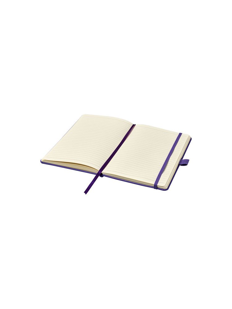 Notatnik skóropodobny z imitacji skóry A5 (14,2 cm x 21,4 cm) z elastyczną gumką, zakładką, pętlą na pióro i harmonijkową tylną kieszenią. Zawiera 96 arkuszy papieru w linie w gramaturze 80 g/m2 i jest oferowany w białej obwolucie typu Journalbook.