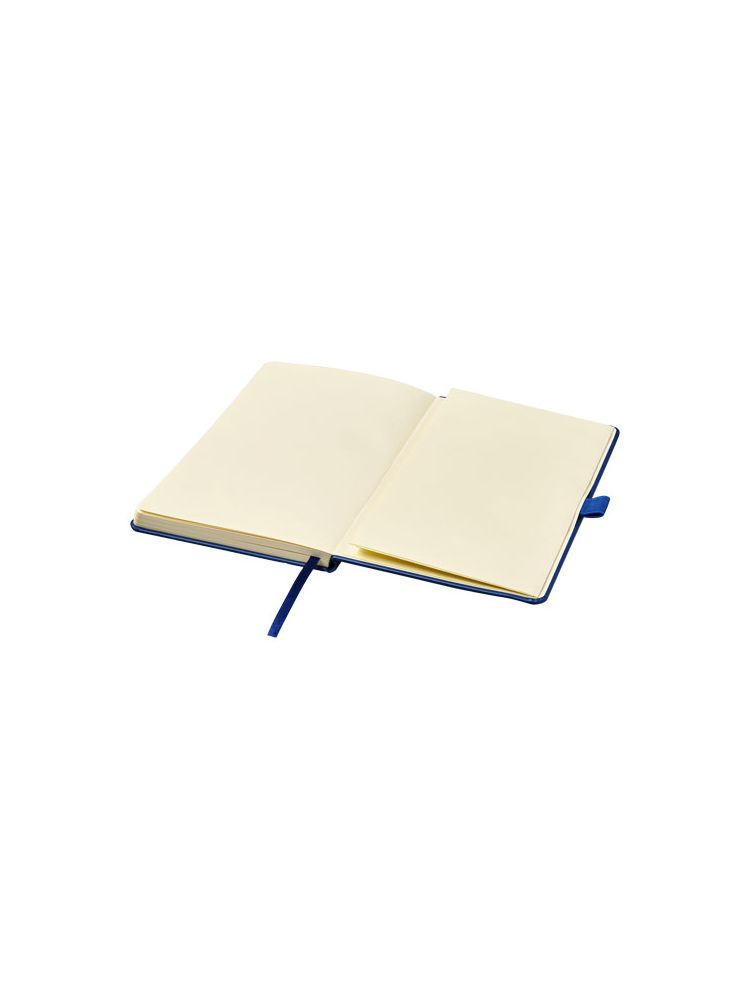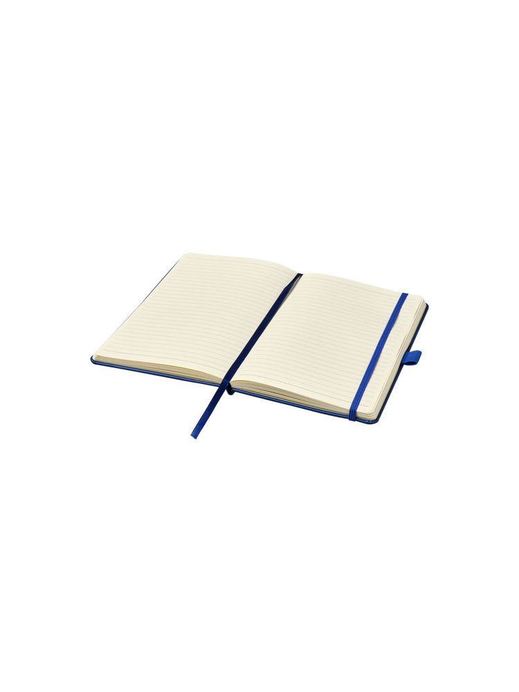 Notatnik skóropodobny z imitacji skóry A5 (14,2 cm x 21,4 cm) z elastyczną gumką, zakładką, pętlą na pióro i harmonijkową tylną kieszenią. Zawiera 96 arkuszy papieru w linie w gramaturze 80 g/m2 i jest oferowany w białej obwolucie typu Journalbook.