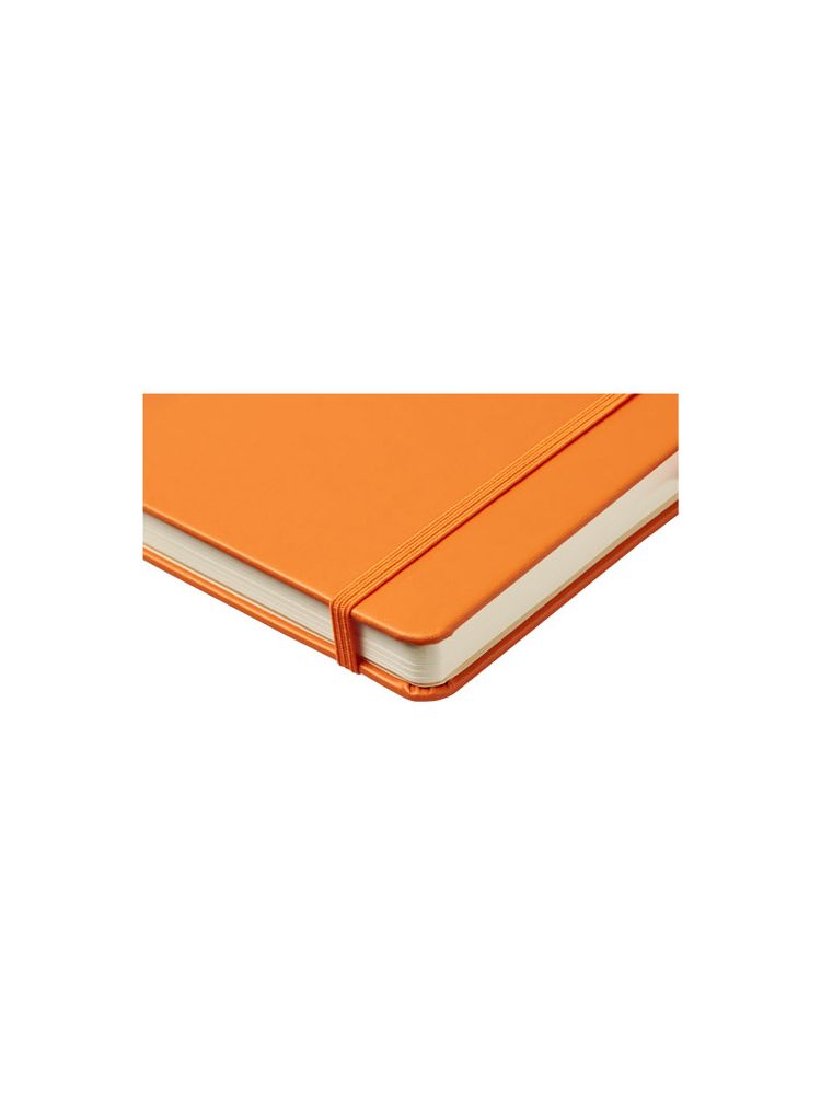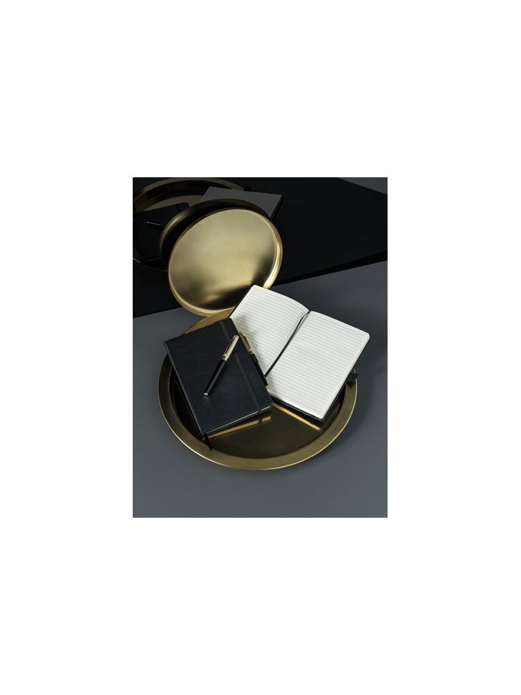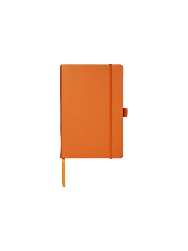 Notatnik skóropodobny z imitacji skóry A5 (14,2 cm x 21,4 cm) z elastyczną gumką, zakładką, pętlą na pióro i harmonijkową tylną kieszenią. Zawiera 96 arkuszy papieru w linie w gramaturze 80 g/m2 i jest oferowany w białej obwolucie typu Journalbook.
