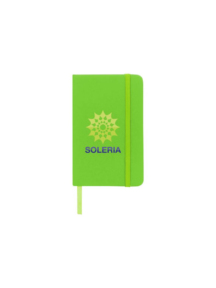 Notatnik Spectrum jest nie tylko niezbędnym elementem wyposażenia biura, ale również doskonałym narzędziem do promocji marki. Notatnik w twardej oprawie wykonany jest z kartonu pokrytego miękką w dotyku okładką z PVC. 96 kartek w linie o gramaturze 60 g/m², wykonanych z ekologicznych surowców, jest idealnych do notowania szybkich pomysłów lub długich notatek. Format A6 jest praktyczny, ponieważ bez problemu mieści się w przeciętnej torebce i jest łatwy do trzymania. Wstążka zakładki i elastyczne zamknięcie są w tym samym kolorze.