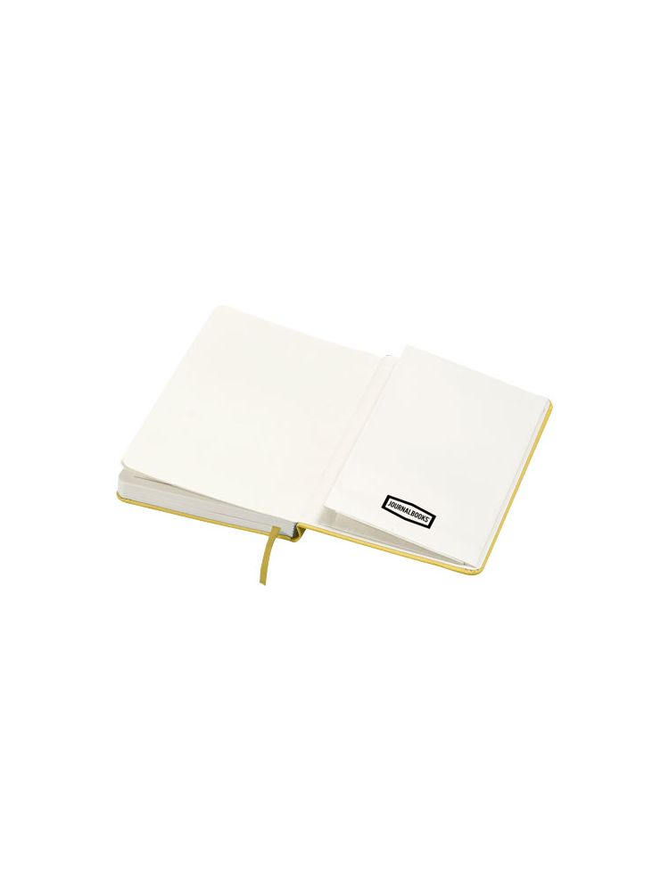 Objęty wzorem zastrzeżonym, klasyczny notatnik A5 z twardą okładką, zamykany na gumkę. Zawiera 80 kartek (80 g/m²) w linie, idealnych do zapisywania i dzielenia się notatkami. Z tyłu ma rozkładaną kieszonkę na małe karteczki. Dołączone etui upominkowe Journalbooks.