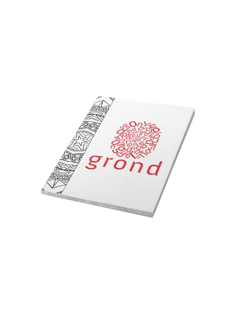 Notes A5 z 40 kartkami białego papieru (100 g/m2). Posiada strony do kolorowania oraz strony w linie do robienia notatek.