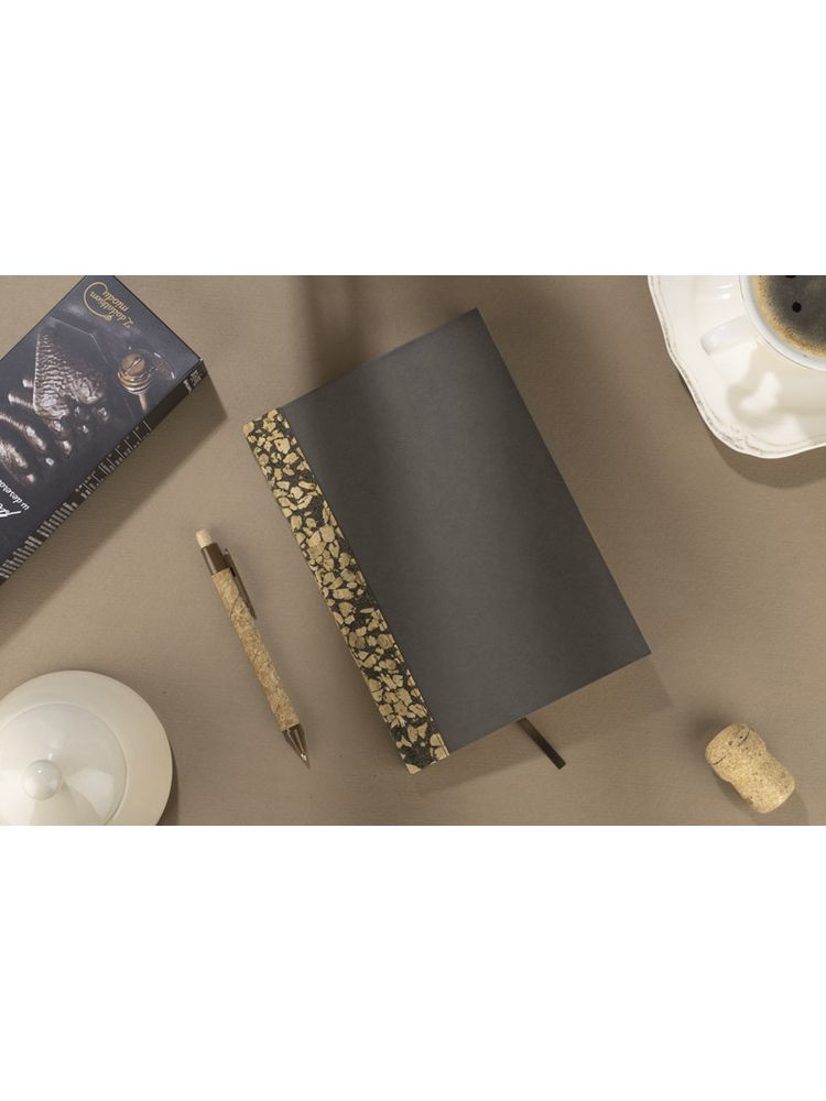 Notes ESPRESSO – czyli produkt, który inspiruje i pobudza wyobraźnię. Jego okładka została wyprodukowana z dodatkiem zmielonych ziaren kawy (15%) – ten unikalny materiał nadaje mu niepowtarzalny charakter i sprawia, że jest to nie tylko notes, ale także mała podróż do świata aromatycznego doznania. Grzbiet notesu, przywodzący na myśl strukturę korka podkreśla jego ekologiczny charakter, a 30% jego składu stanowią zmielone ziarna kawy. 80 kremowych, kraftowych kart zachwyci osoby kreatywne, a wzór w regularne i dyskretnie zadrukowane kropki zapewni ład i porządek w notatkach. Dopełnieniem produktu jest biodegradowalny woreczek, który stanowi jego opakowanie. Notes zaprojektowany jest w popularnym i poręcznym formacie A5.