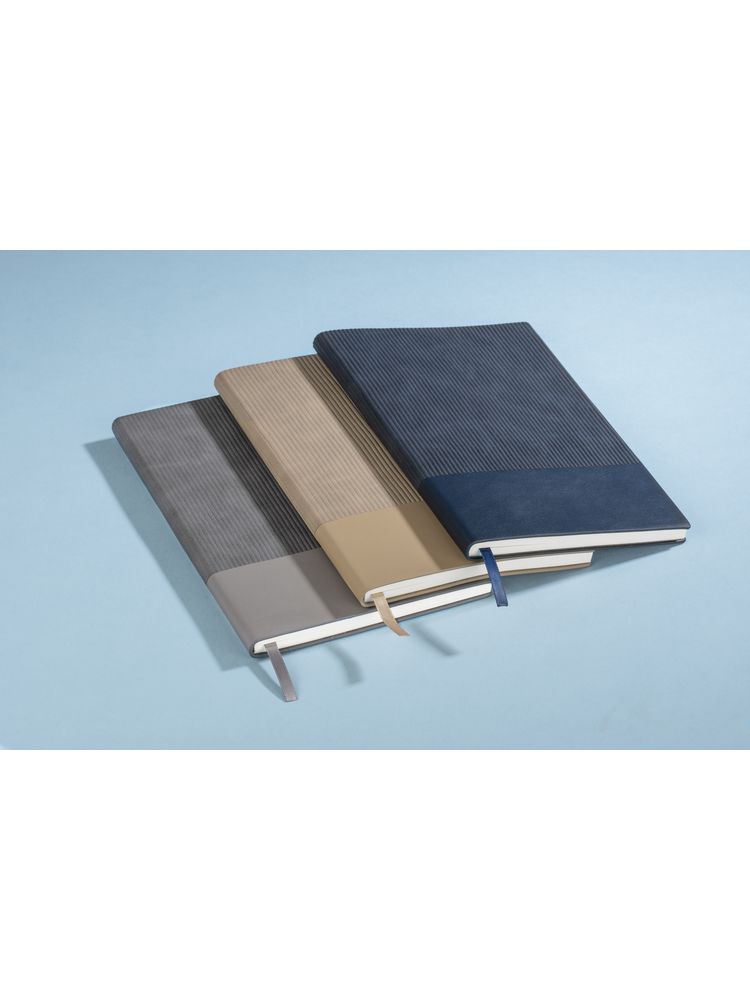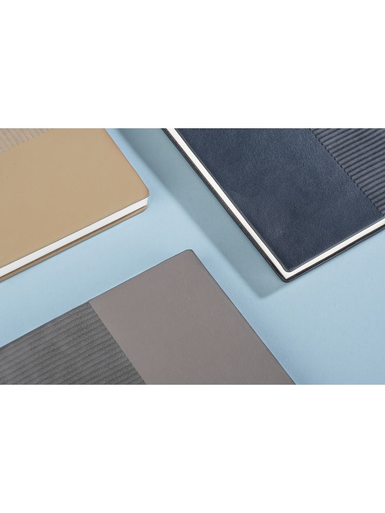 Notes FLAF w formacie A5 występuje w 3 stonowanych i eleganckich kolorach. Notes w miękkiej, okładce z łączonych materiałów: ekoskóry i imitacji sztruksu, który jest niezwykle przyjemny w dotyku. Zawiera 80 kartek w kropki. W środku dodatkowo praktyczna wstążeczka – zakładka.