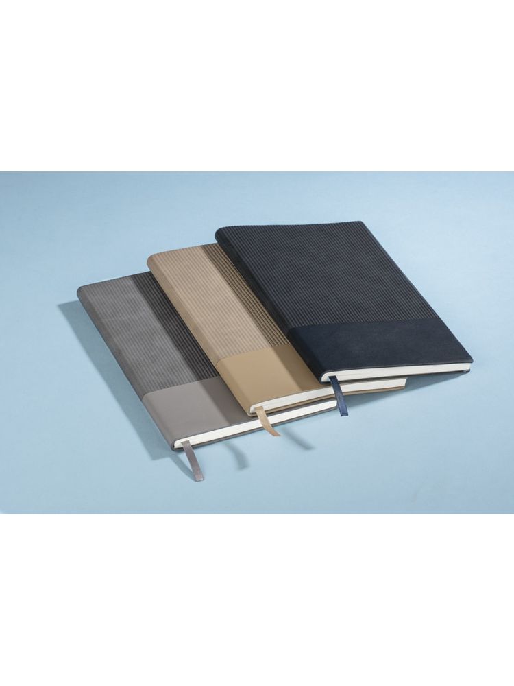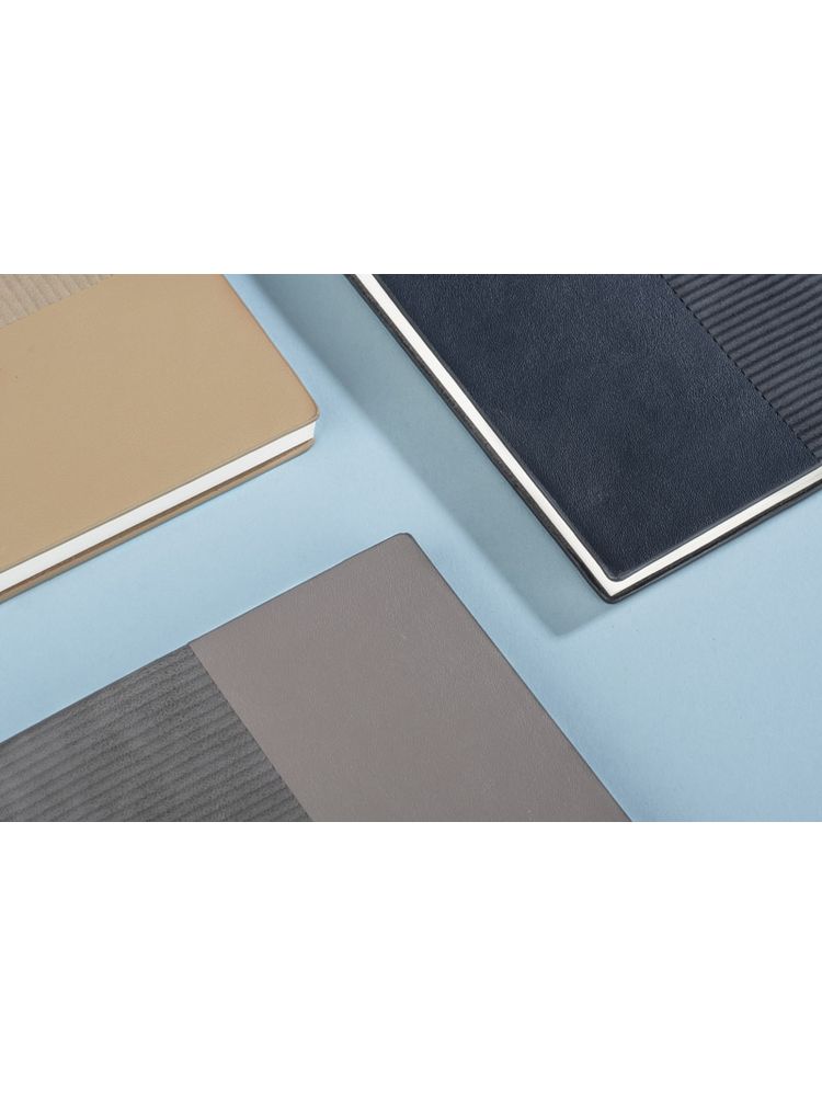 Notes FLAF w formacie A5 występuje w 3 stonowanych i eleganckich kolorach. Notes w miękkiej, okładce z łączonych materiałów: ekoskóry i imitacji sztruksu, który jest niezwykle przyjemny w dotyku. Zawiera 80 kartek w kropki. W środku dodatkowo praktyczna wstążeczka – zakładka.